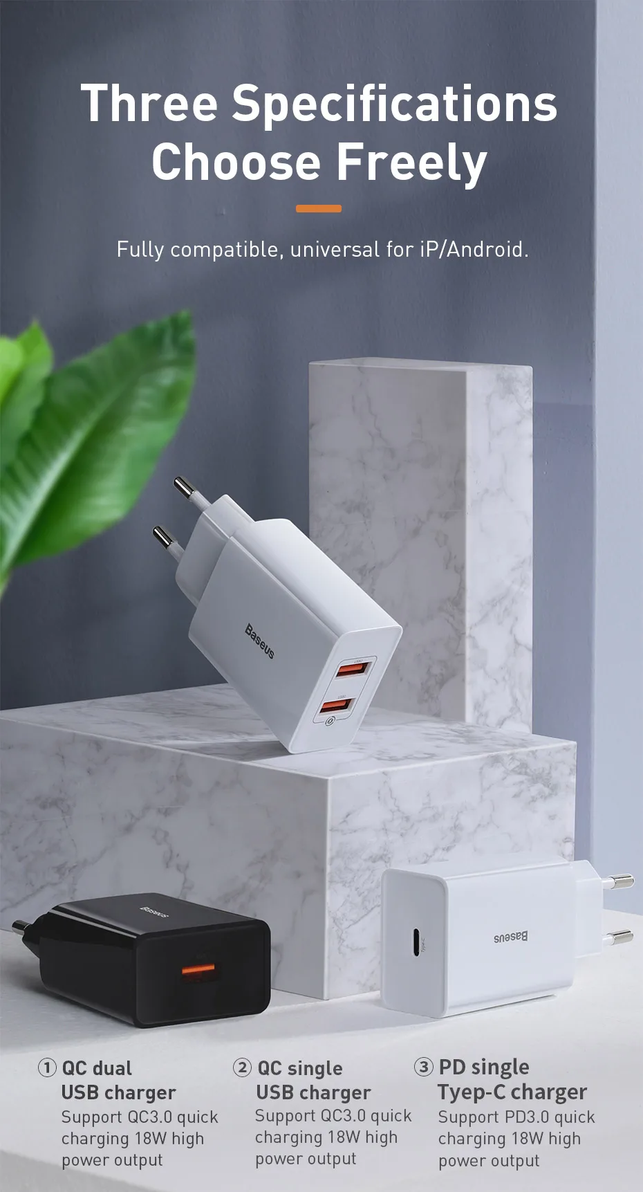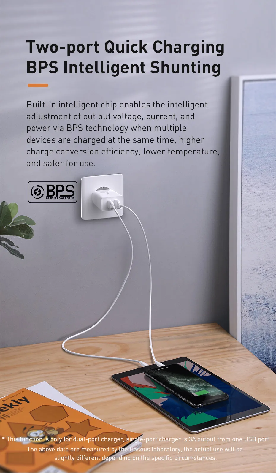 Baseus 18W Dual USB Charger Quick Charge QC PD 3.0 Type C Fast Charging For iPhone Xiaomi QC3.0 USB C Wall Mobile Phone Charger
