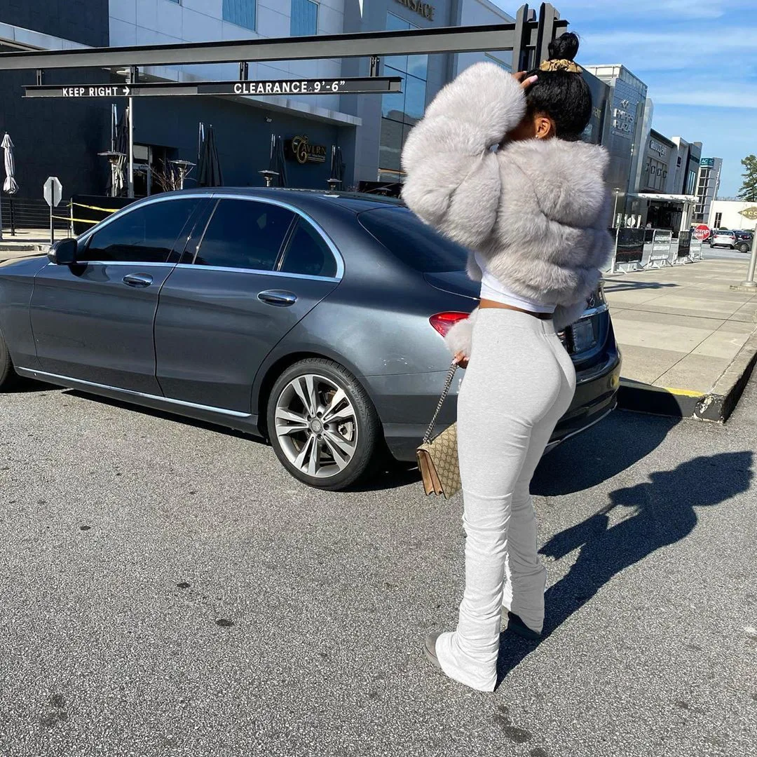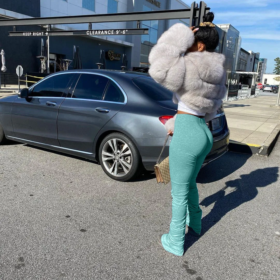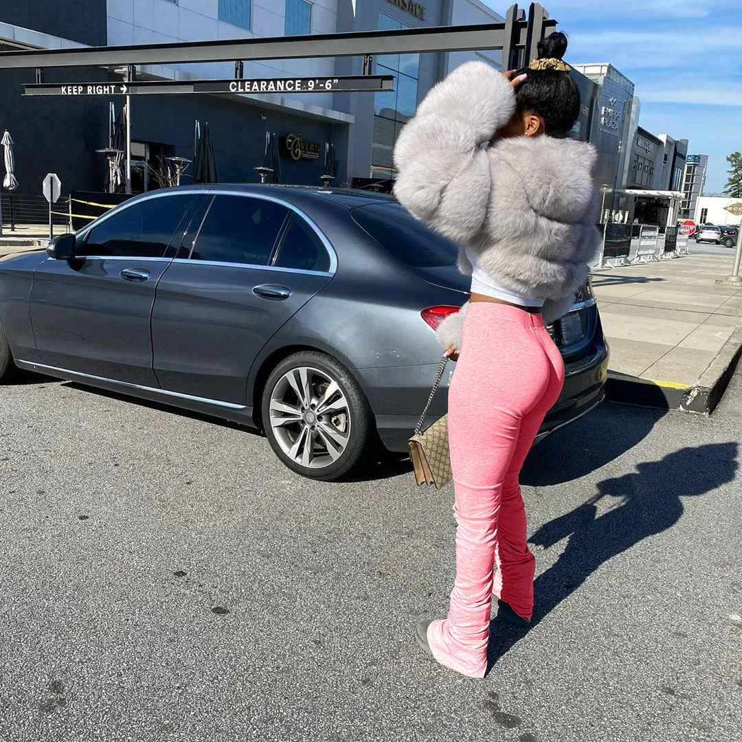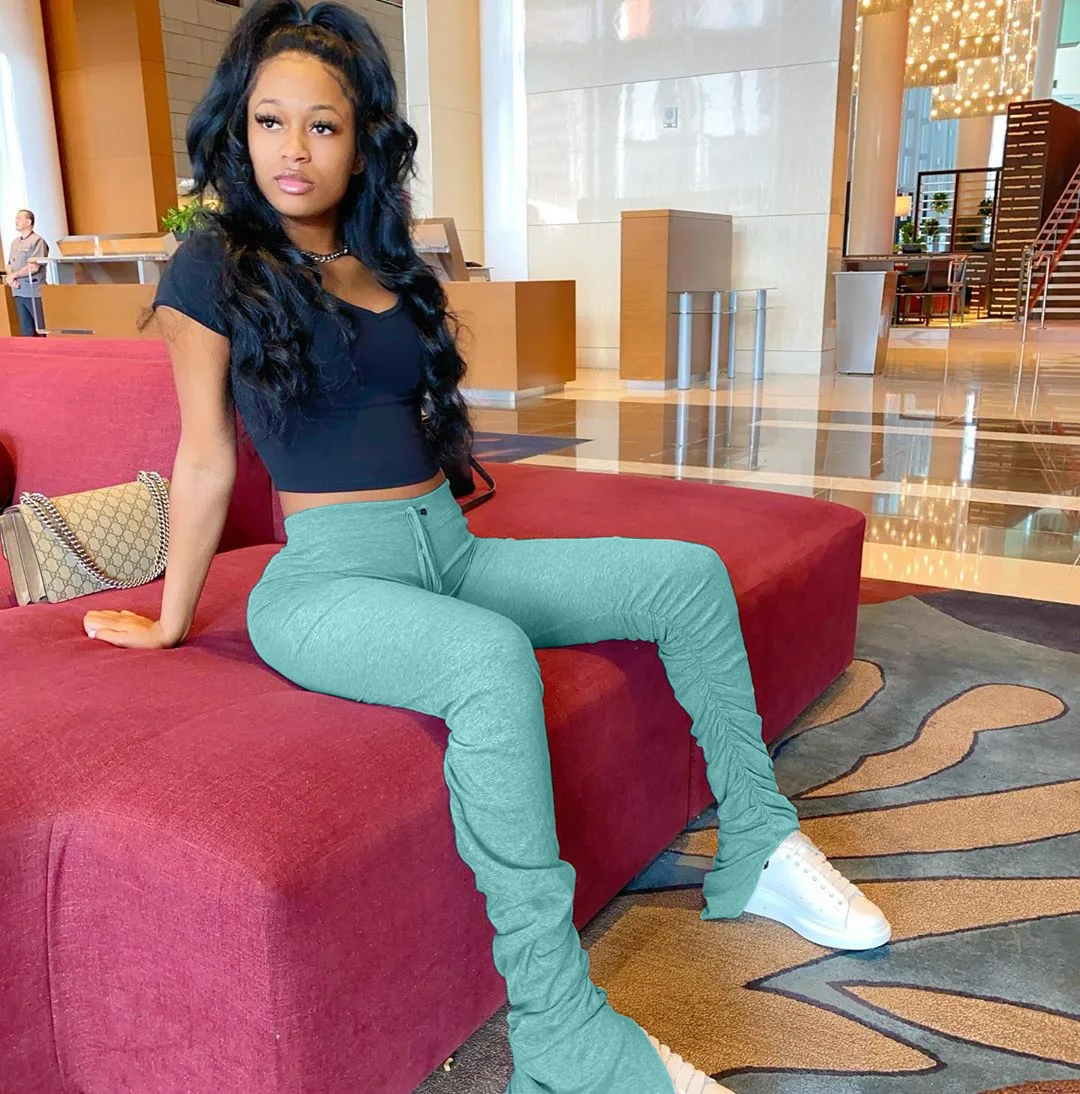 Stacked Sweatpants Joggers Women High Waist Flare Pants Plus Size Fitness Pantalon Solid Active Wear Streetwear