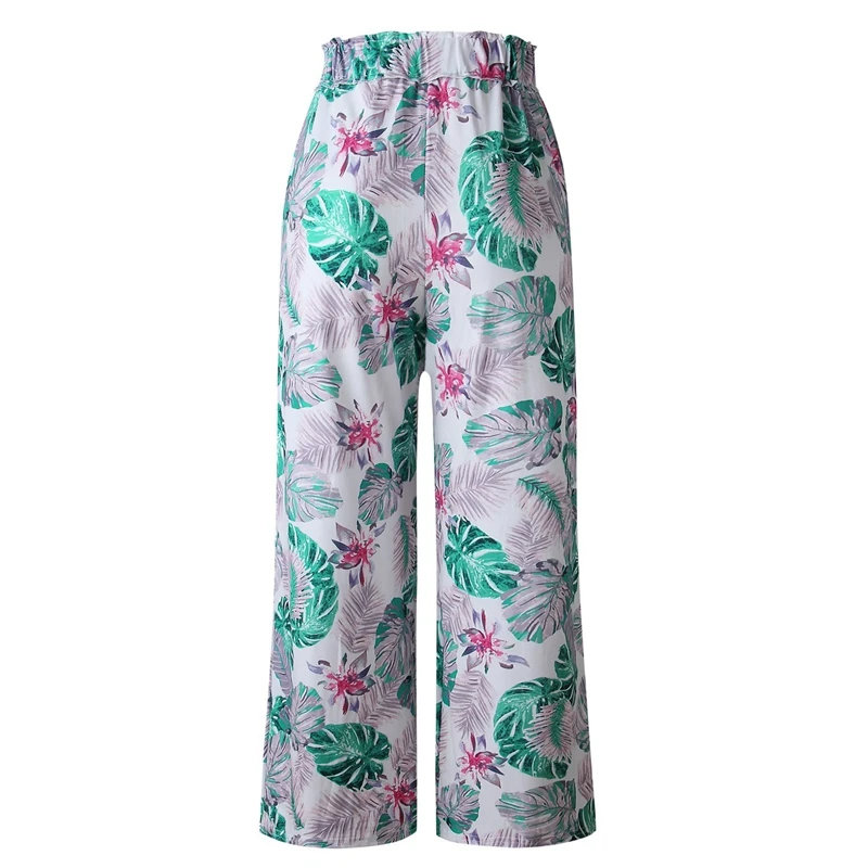 Summer Vintage Boho Wide Leg Pants High Waist Loose Floral Print Long Women Trousers Casual Beach Pants