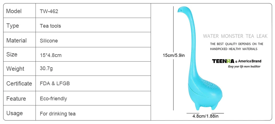 TEENRA Loch Ness Monster Tea Infuser Strainer Silicone Tea Filter Reusable Tea Maker Leaf Diffuser Accessories Teaware