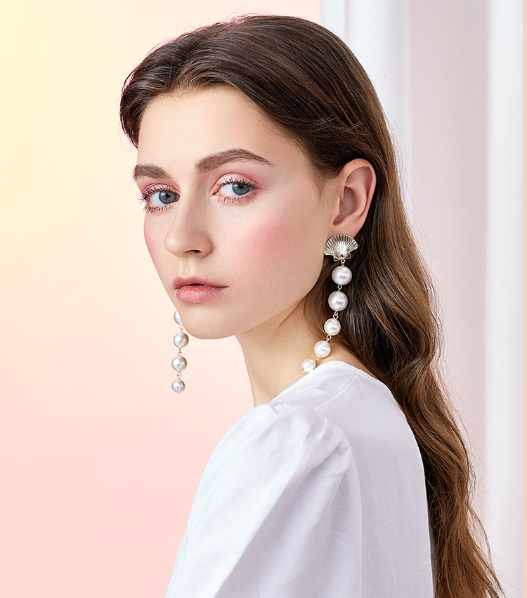The design of Europe and the United States exaggerated cold wind temperament long mermaid tears metal shell imitation pearl earrings ear clip