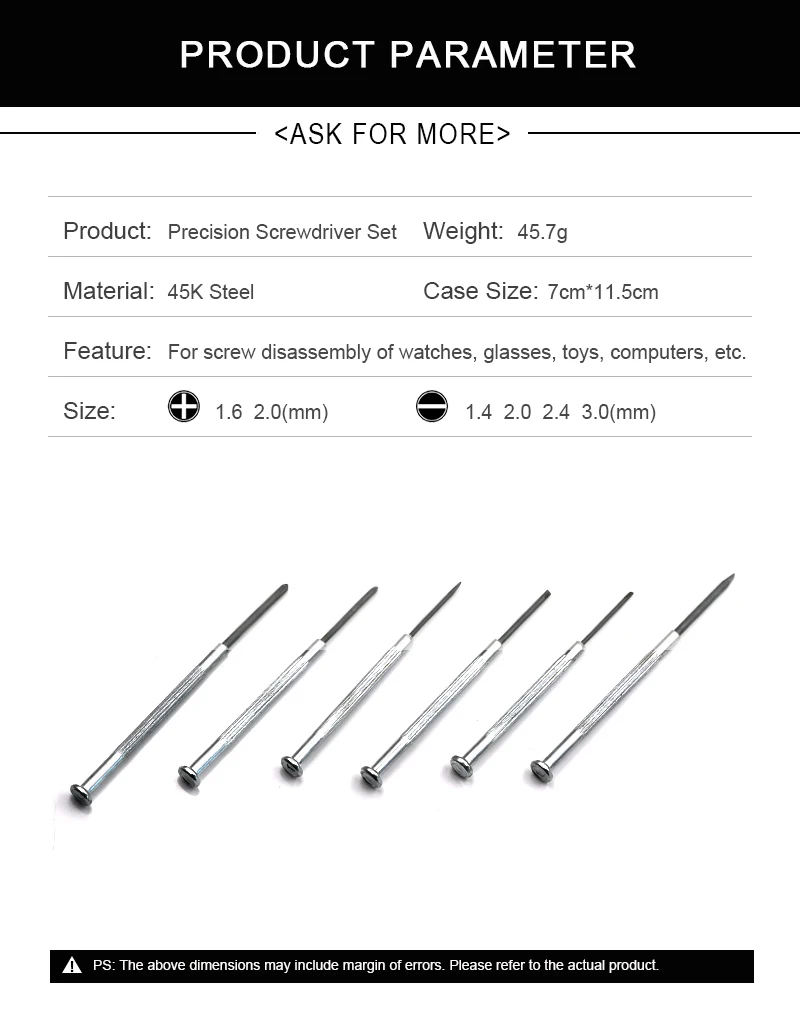 COLOUR_MAX 6Pcs Multifunction Small Screwdriver Set With Slotted Phillips Bits For Watch Glasses Screw Driver Repair Tools (White)