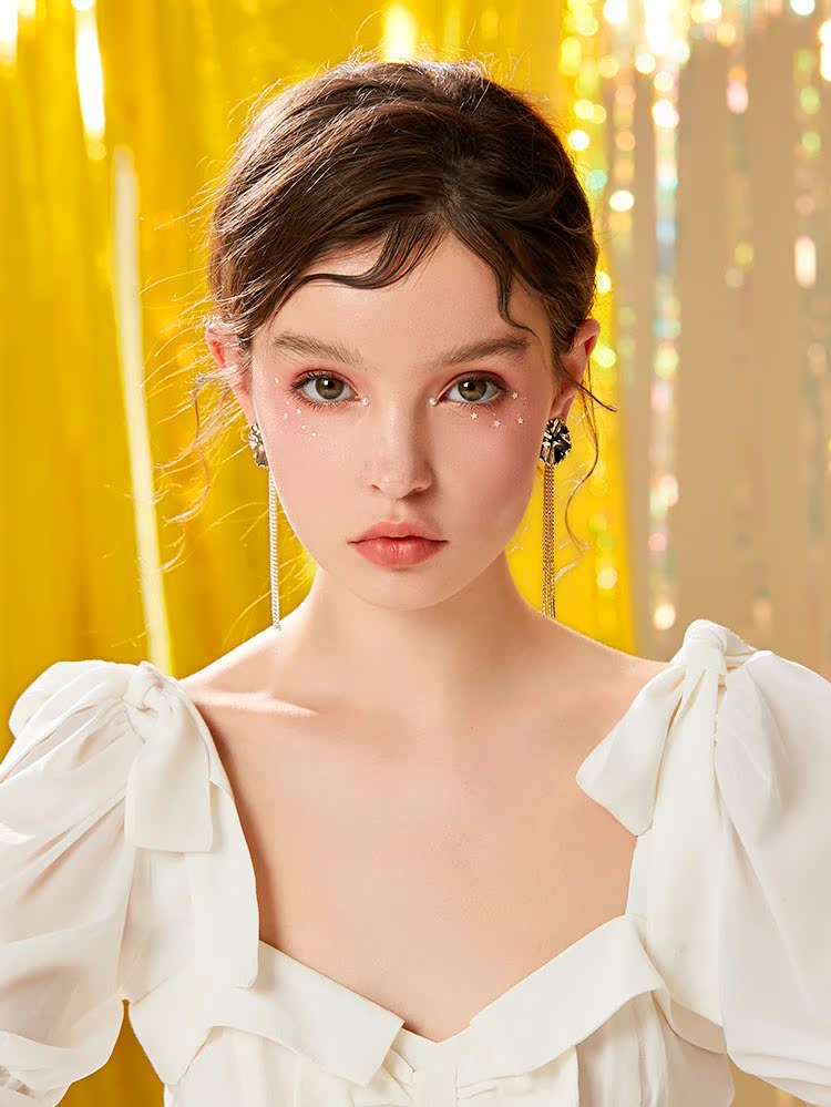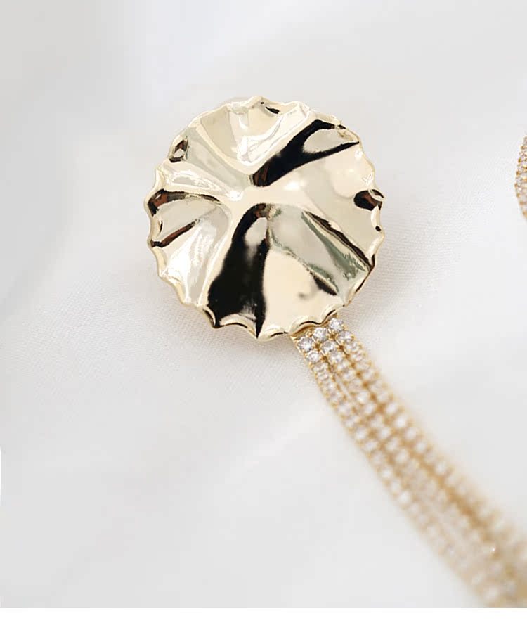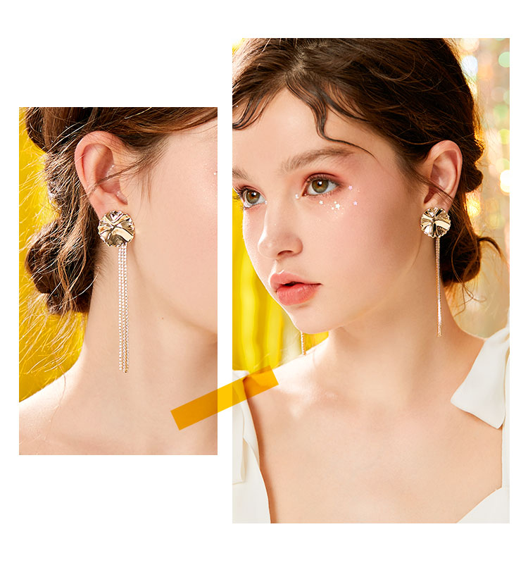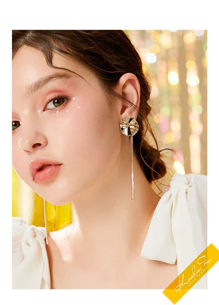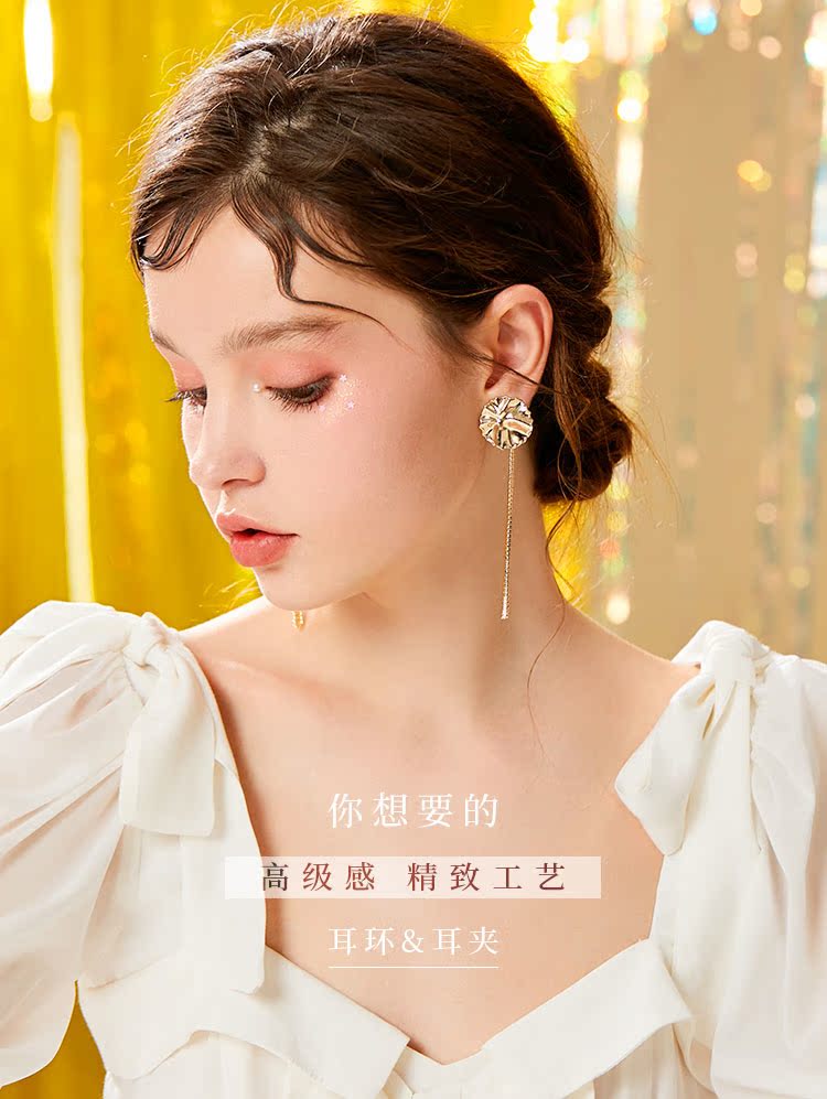 超闪 设计感圆脸显瘦长款INS欧美风流苏闪钻水钻耳环耳夹无耳洞女
