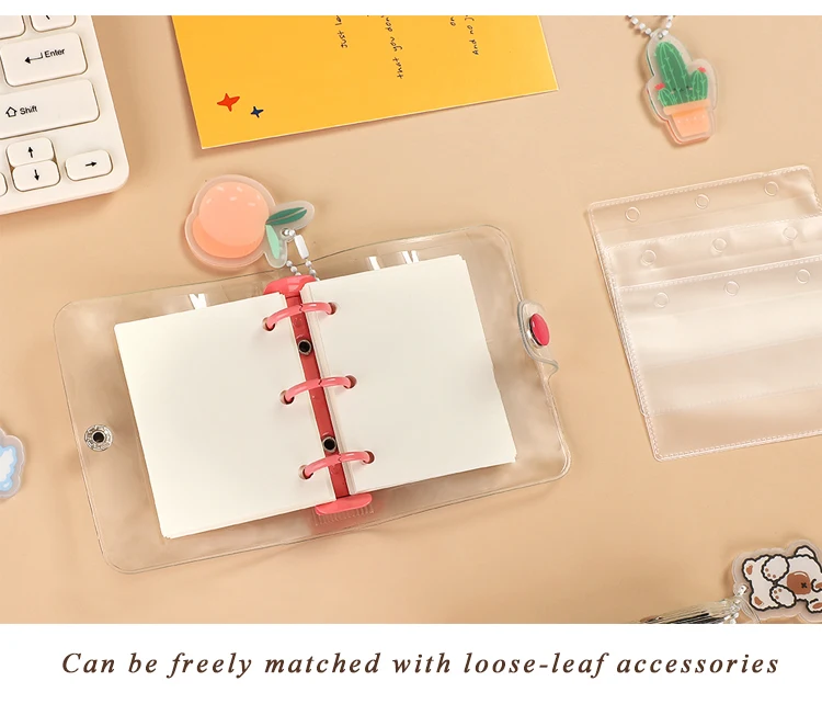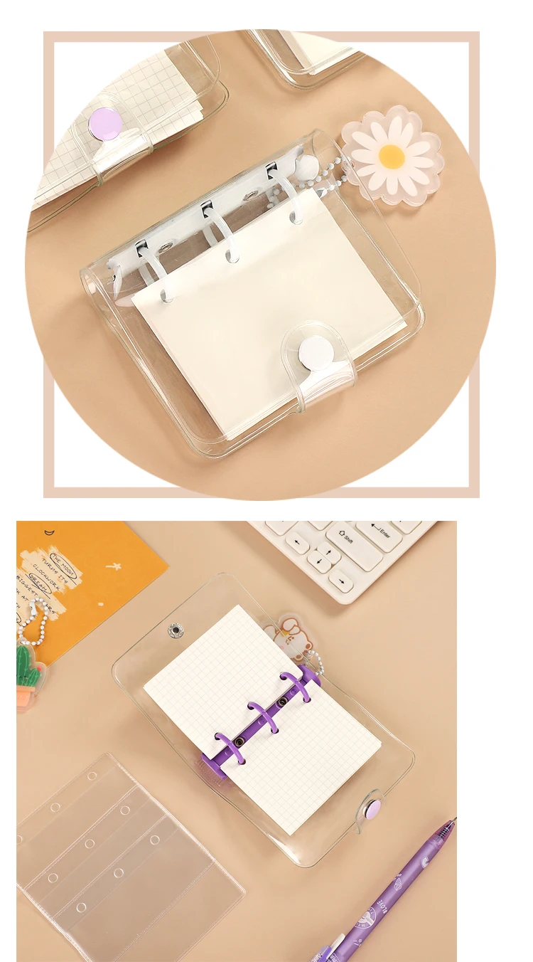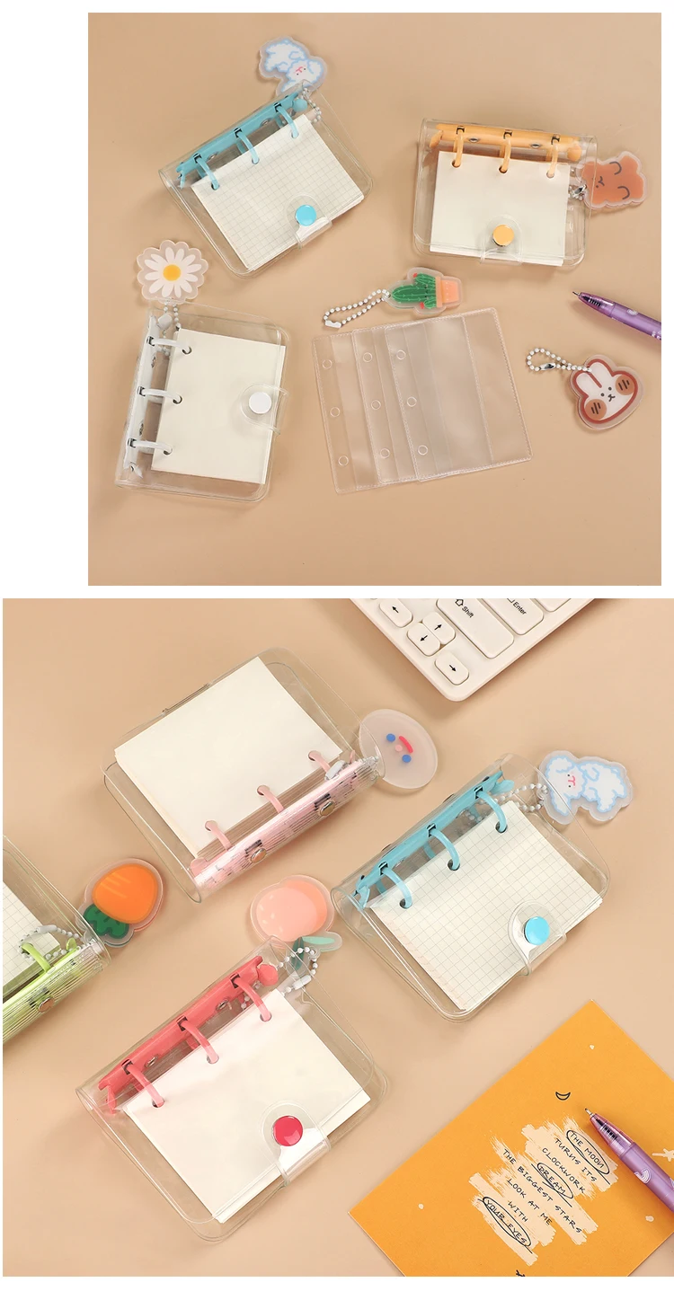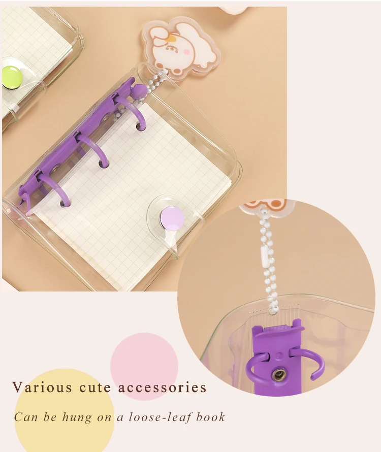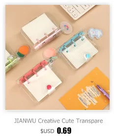JIANWU Creative Cute Transparent 3 ring Mini Loose-leaf Hand Book Student Portable Notebook ring binder Kawaii School Supplies