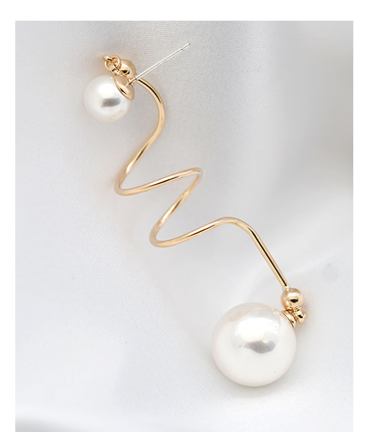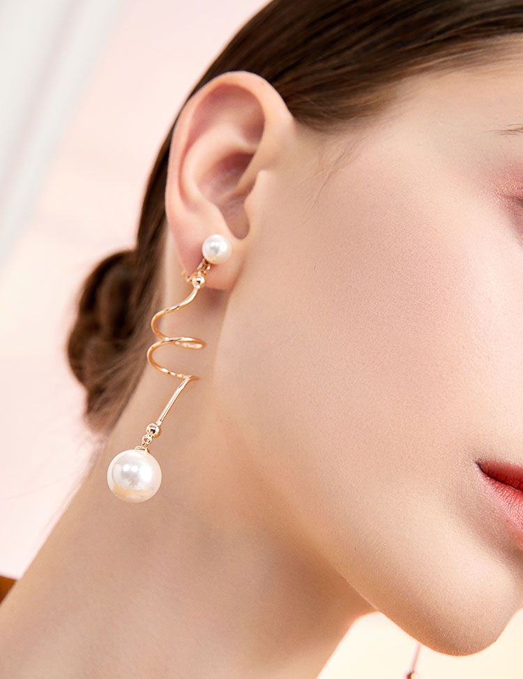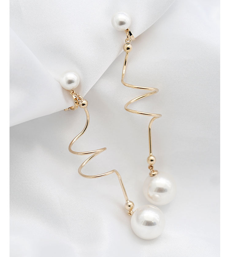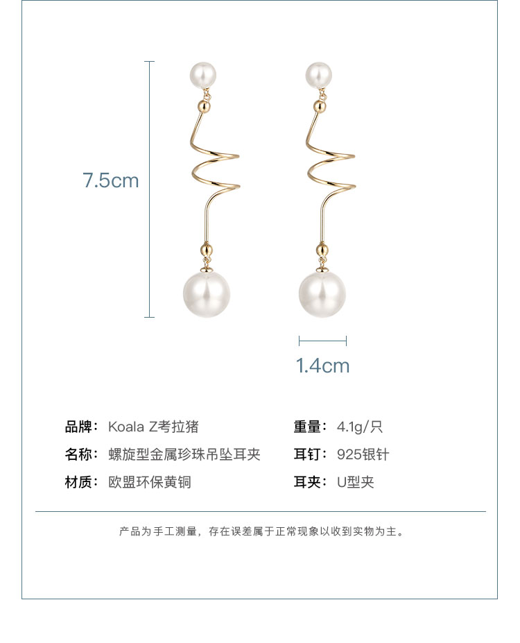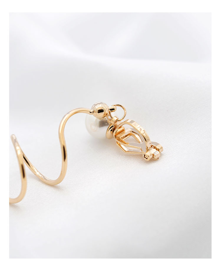 设计感极简冷淡风金属螺旋大珍珠长款耳环耳夹无耳洞女欧美夸张