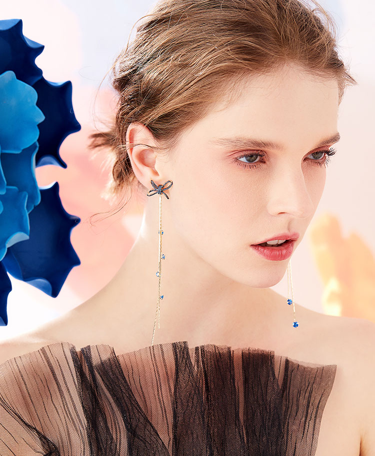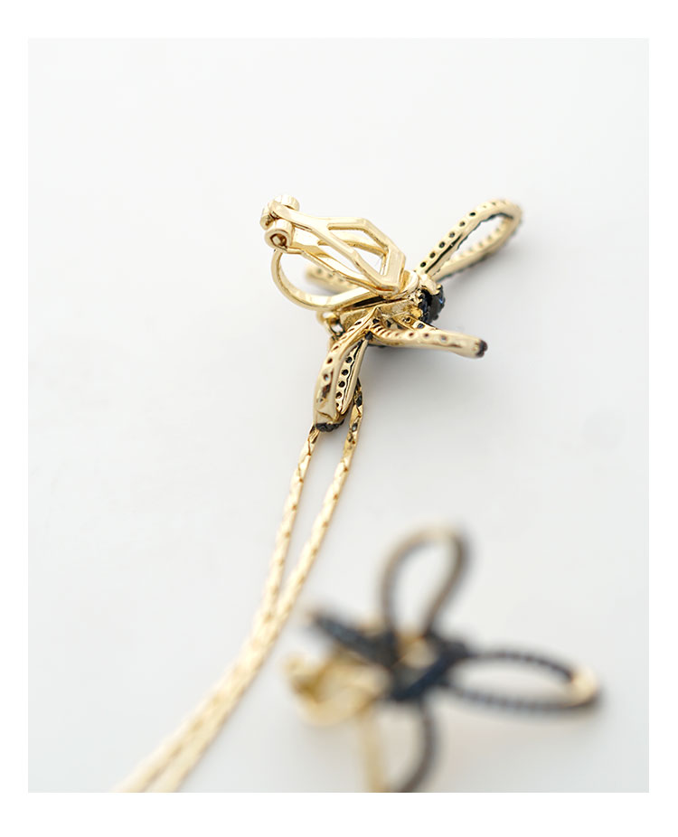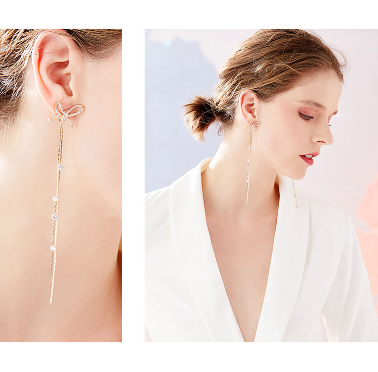 超仙重工显瘦长款冷淡风气质超长蝴蝶结流苏耳环耳夹无耳洞女圆脸