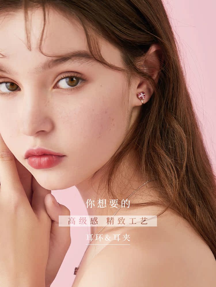 超难!七颗锆石拼制而成!简约设计甜美十字爱心耳钉无耳洞耳夹女