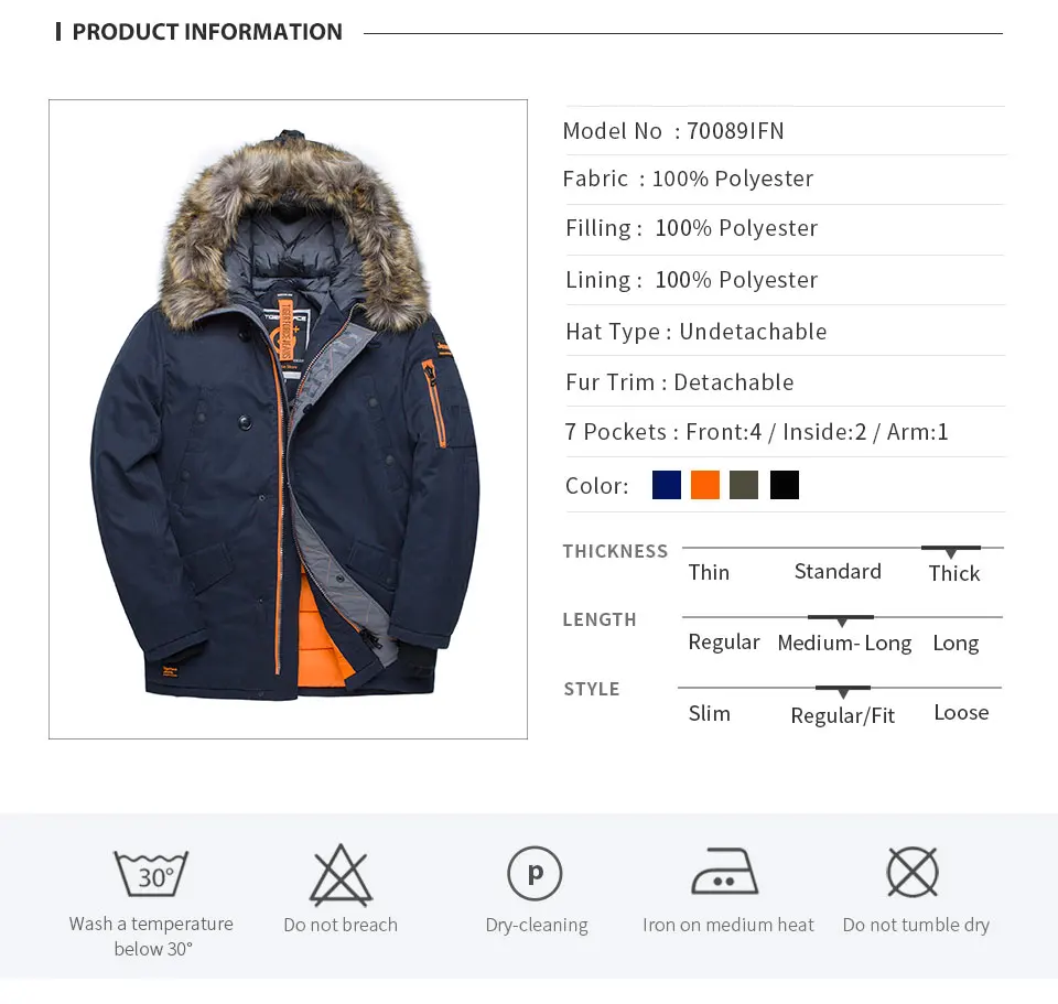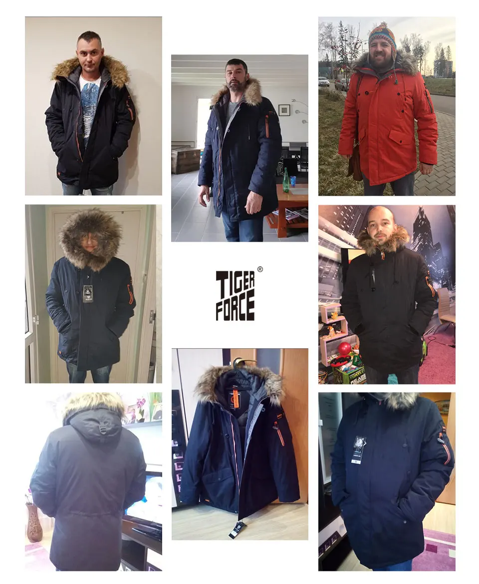 TIGER FORCE Winter Jacket Men Padded Parka Russia Man Winter Coat Artificial Fur Big Pockets Medium-long Thick Parkas Snowjacket