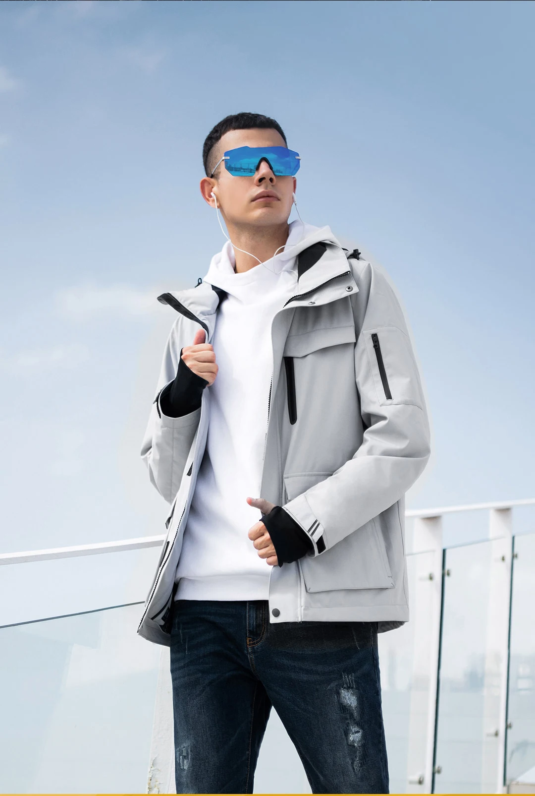 Xiaomi Men's Multi-pocke Jacket Spring Fashion Hooded Stand-up Collar Zip-through Jacket Streetwear Waterproof Coat Uleemark