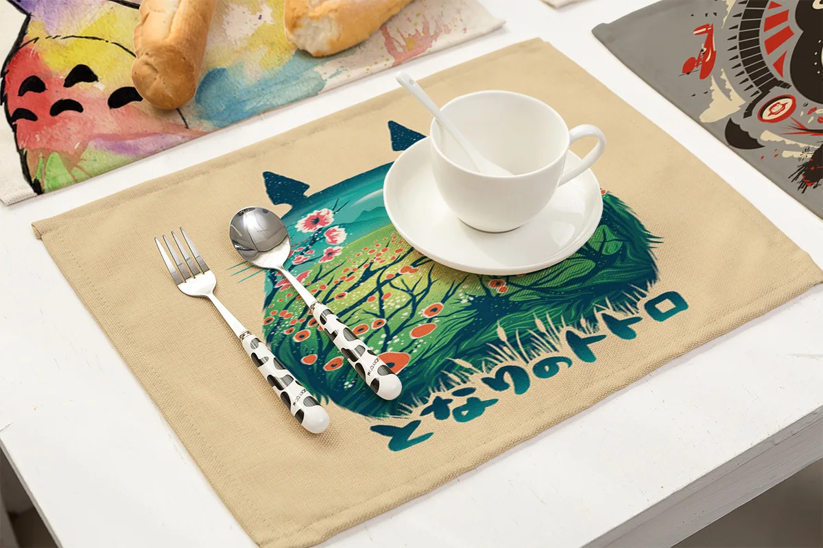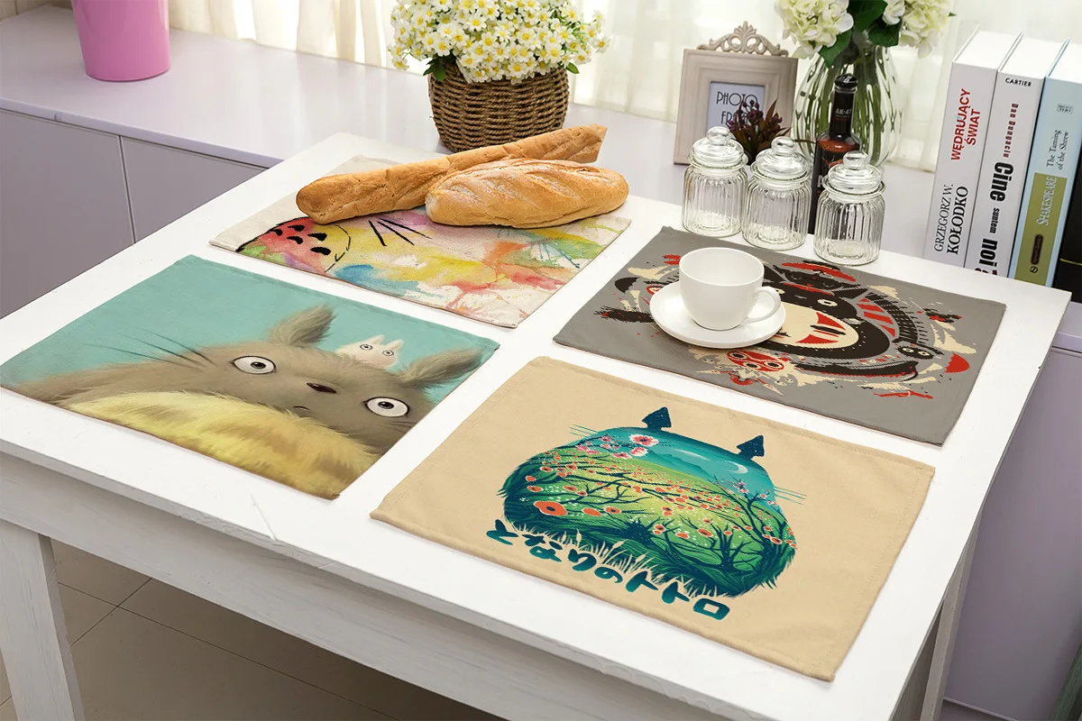 Yilin Cartoon Totoro Table Mats Nordic Home Placemat for Dining Table Linen Rectangle Kitchen Decoration Accessories Home