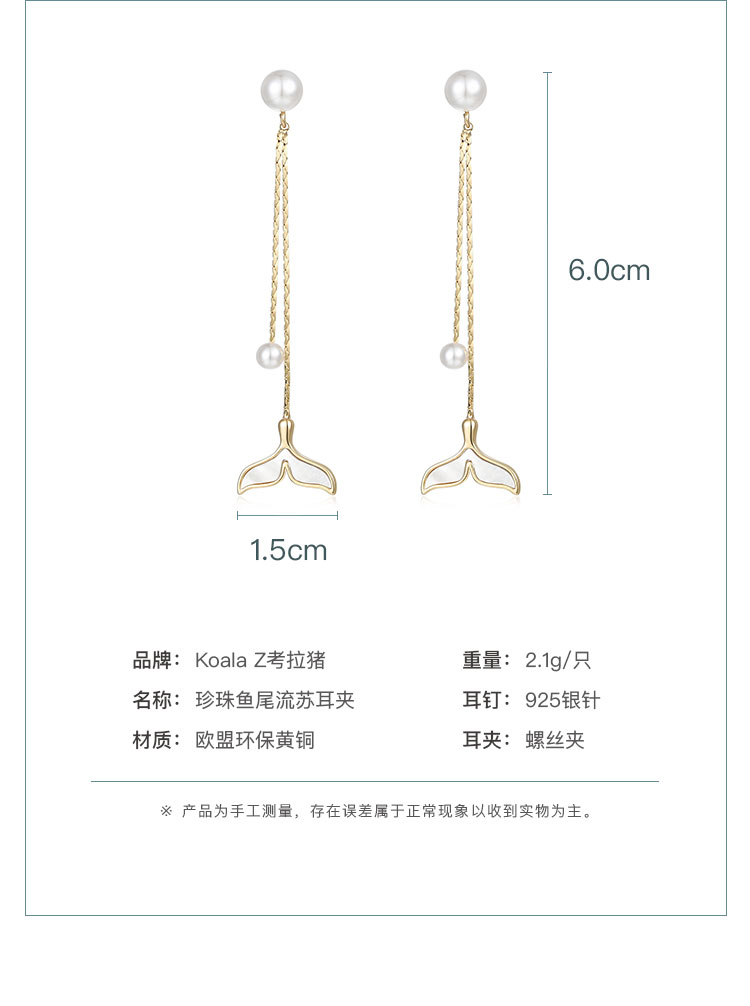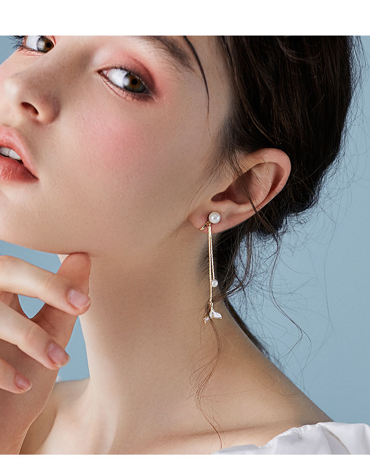 人鱼姬女鱼尾耳坠气质长款百搭耳环耳夹无耳洞2019新款海豚耳钉韩