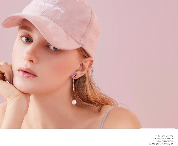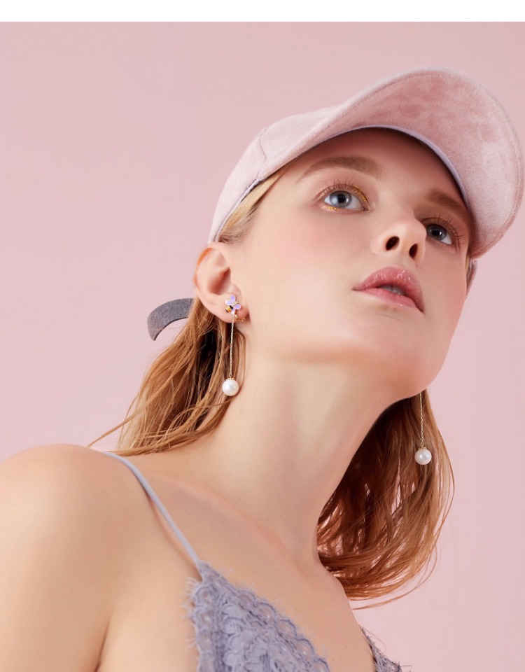 清仓 原49.9 清新简约气质925银针紫色蝴蝶长款耳环耳夹