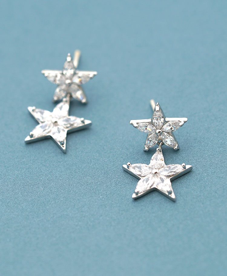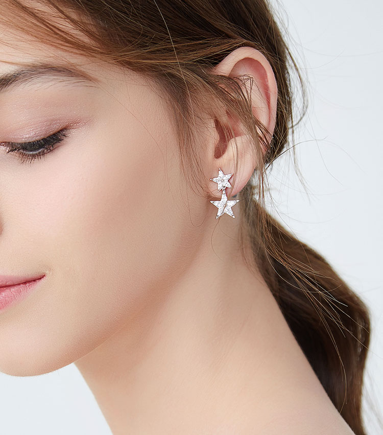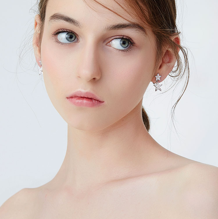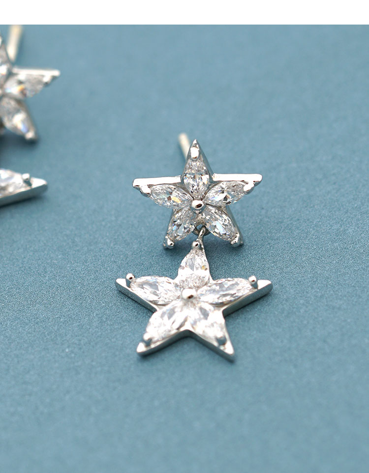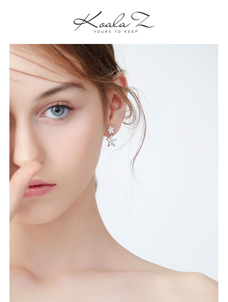 简约百搭精选5A锆石拼接星星五角星耳环耳钉耳夹无耳洞女气质韩国