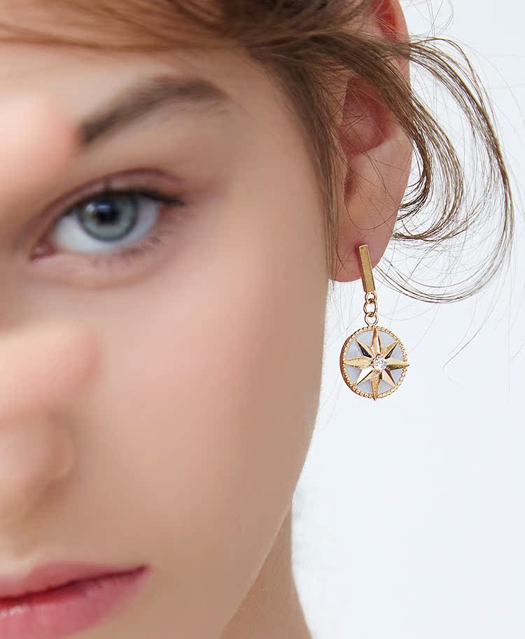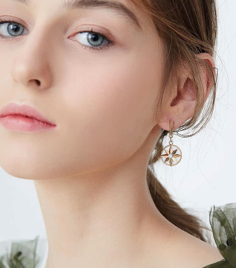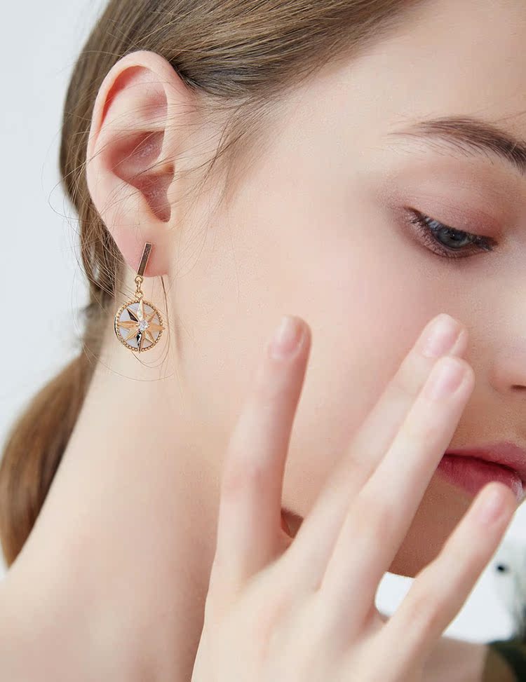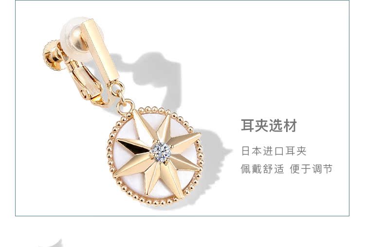 天然贝壳八芒星指南针元素经典耳环耳夹无耳洞女925银针
