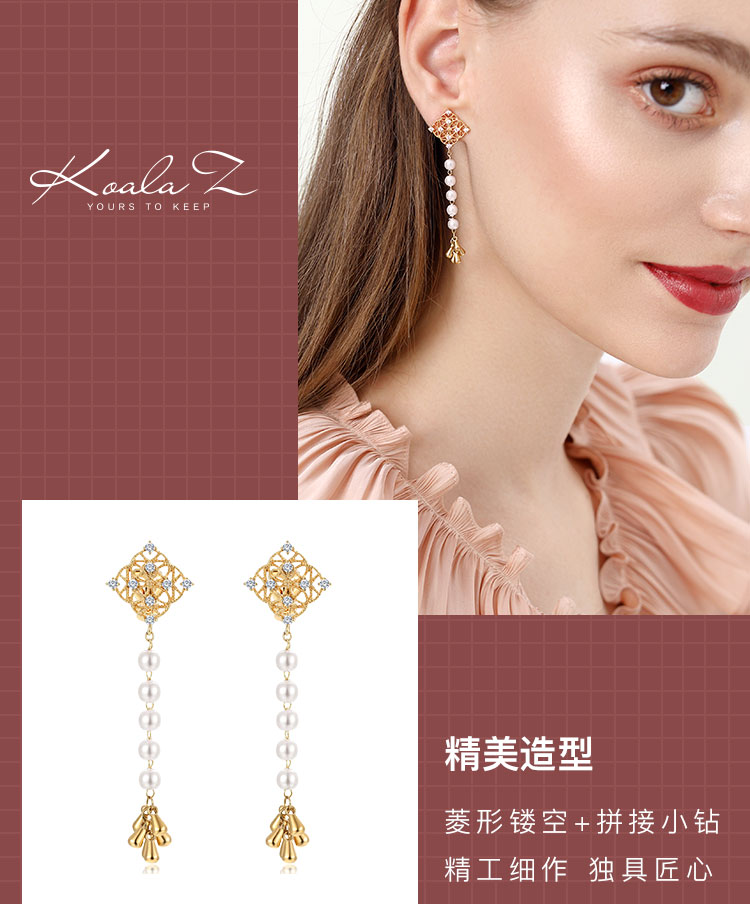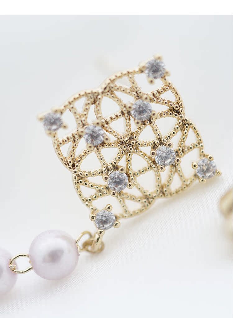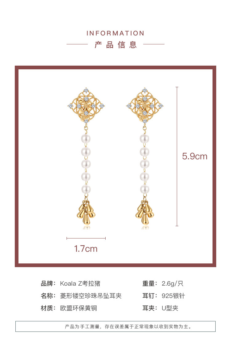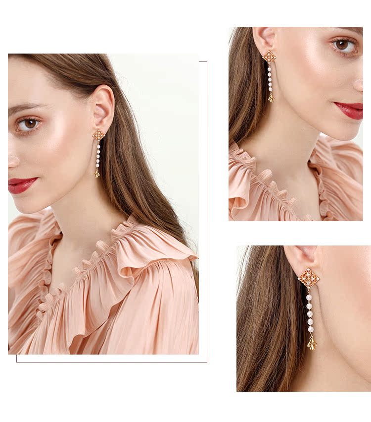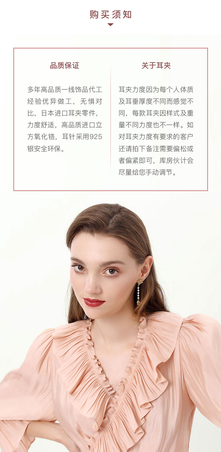 优雅蕾丝金属珍珠葡萄流苏坠长款耳环耳夹无耳洞女OL简约