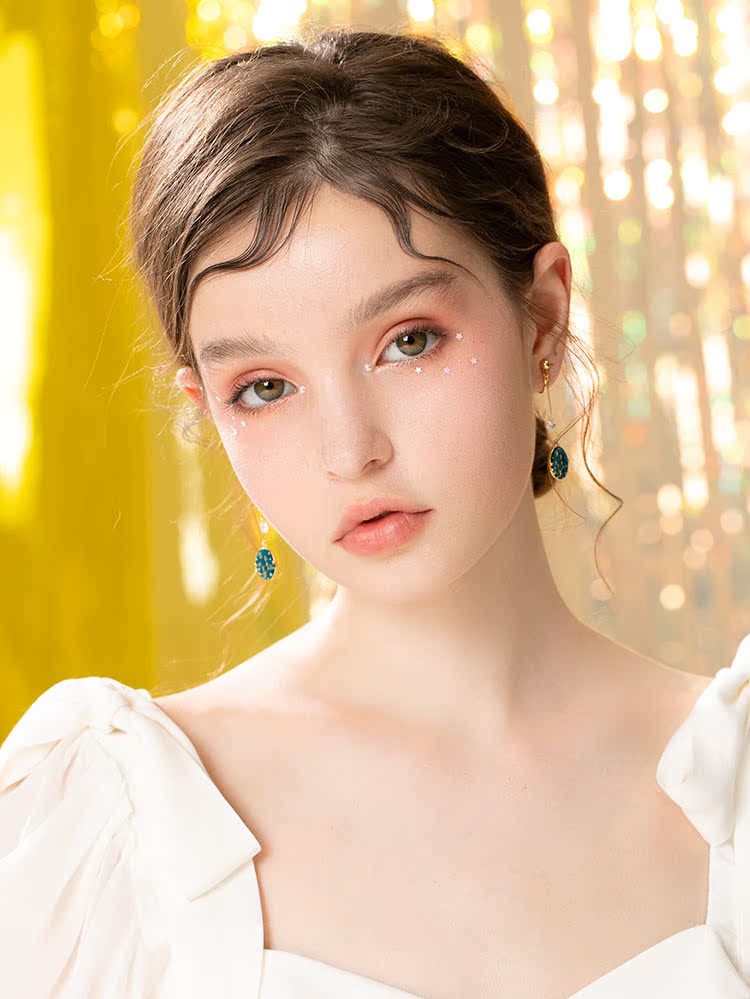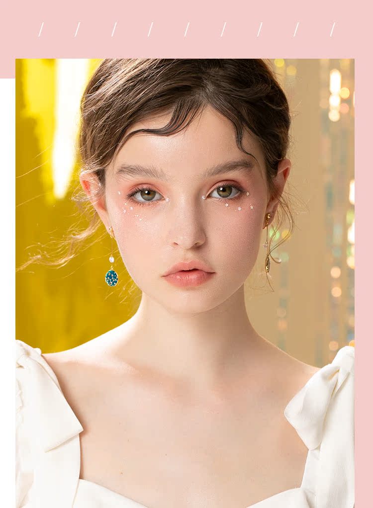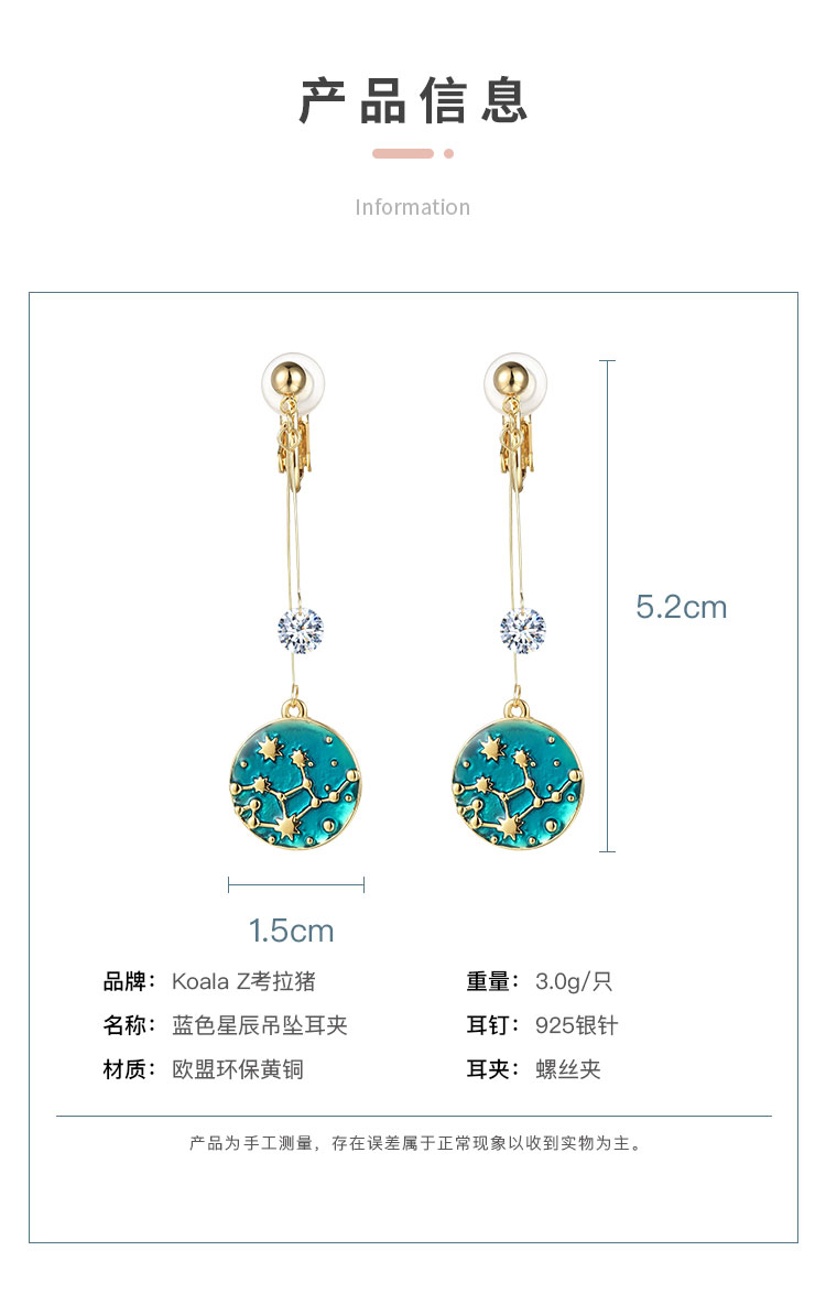 日系手作新品 梵高星空蓝色滴釉圆盘星辰耳环耳钉耳夹女无耳洞