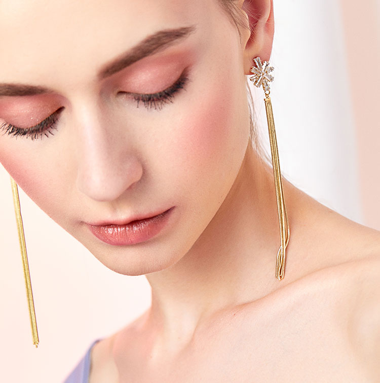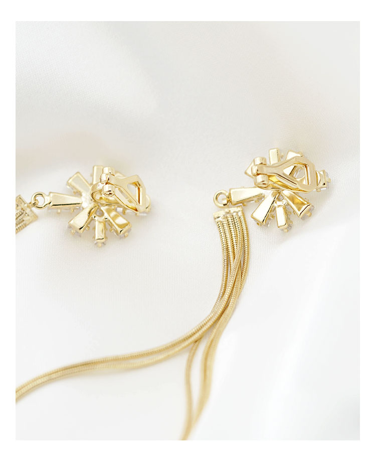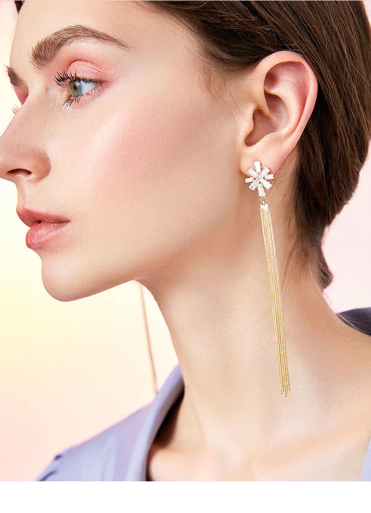 高级品质优雅大气 气质水晶雪花蛇骨流苏耳环耳夹无耳洞女