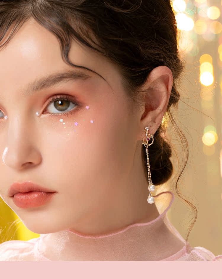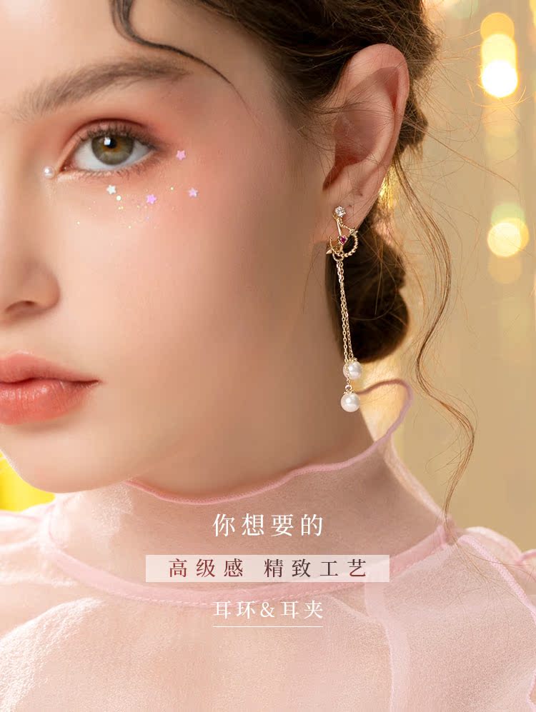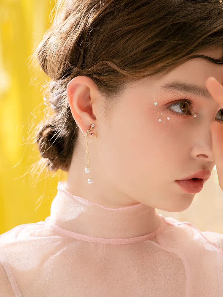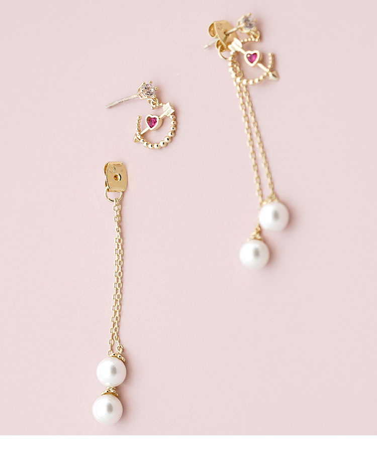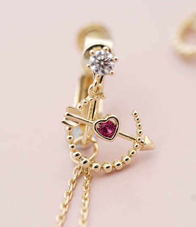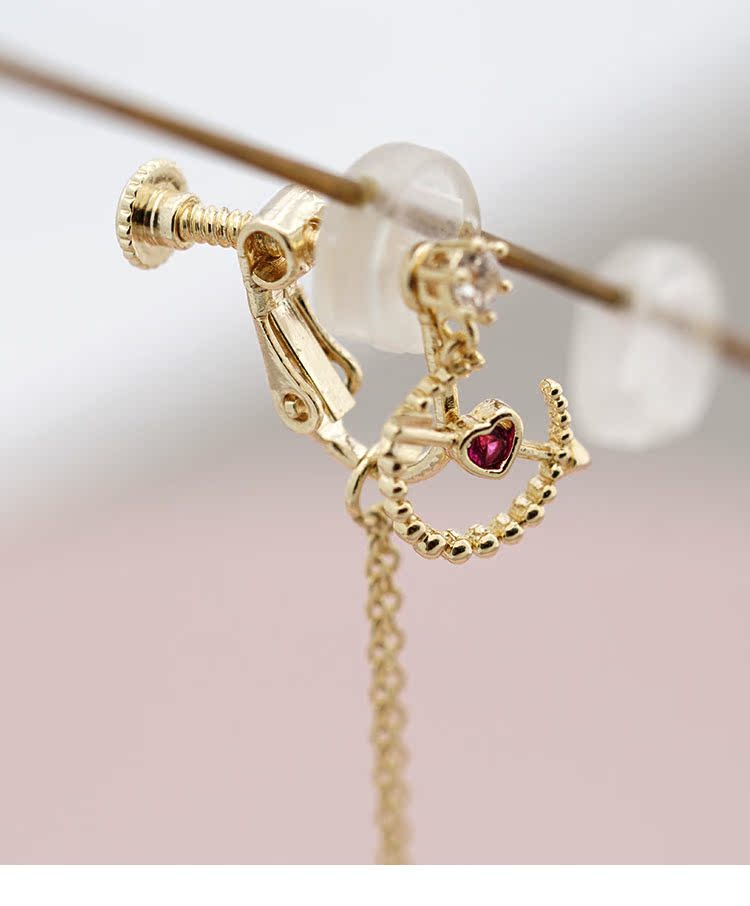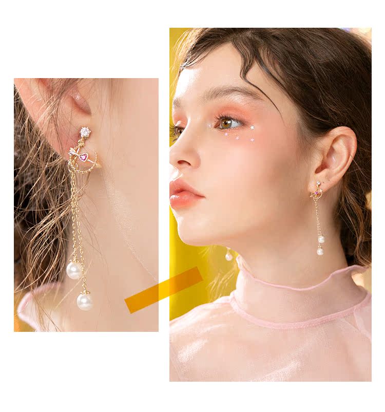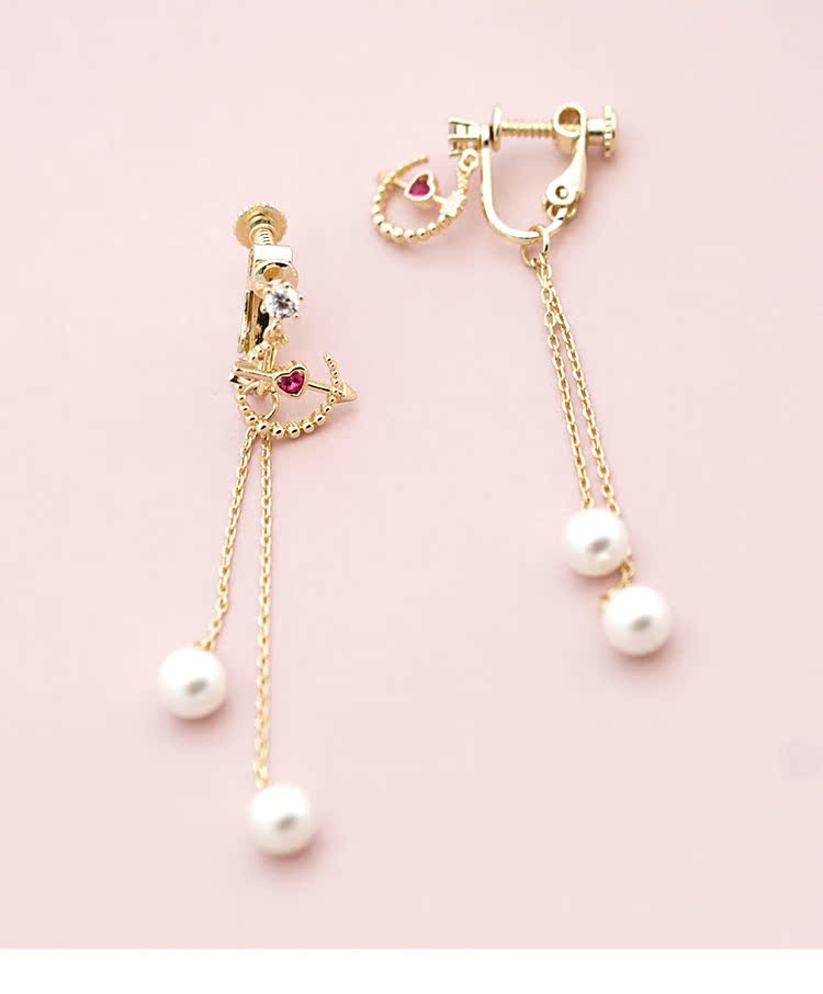 丘比特之箭 别致红色爱心珍珠长款流苏耳环耳夹无耳洞女百搭日系