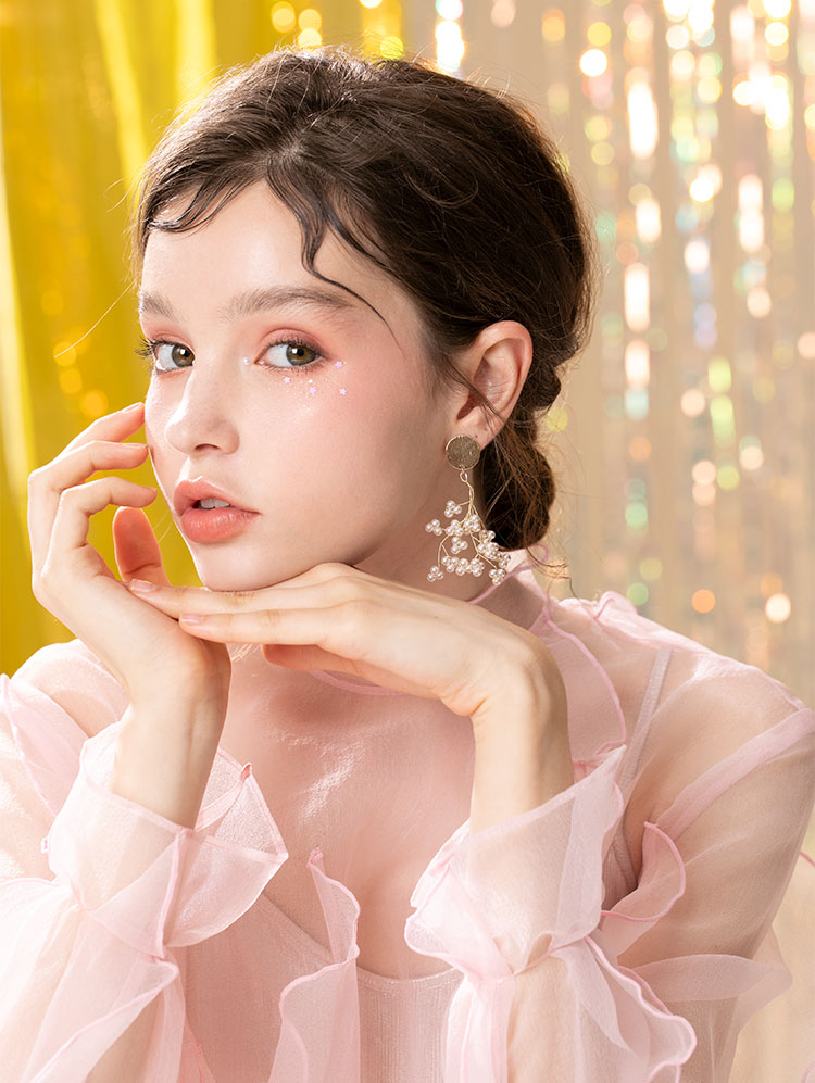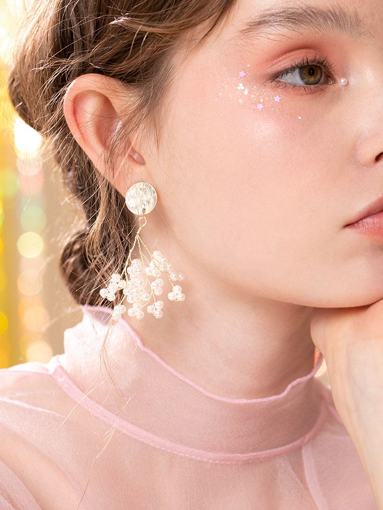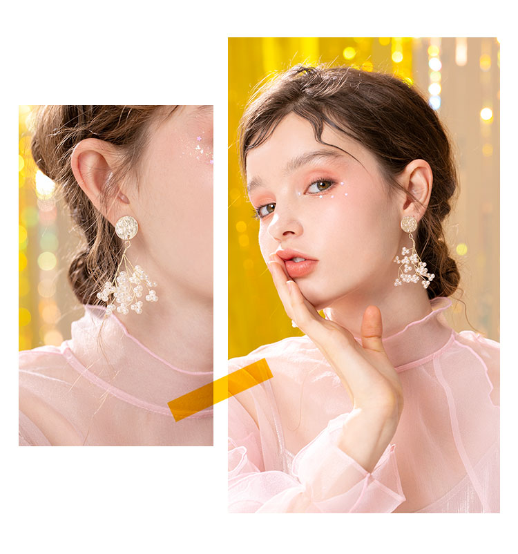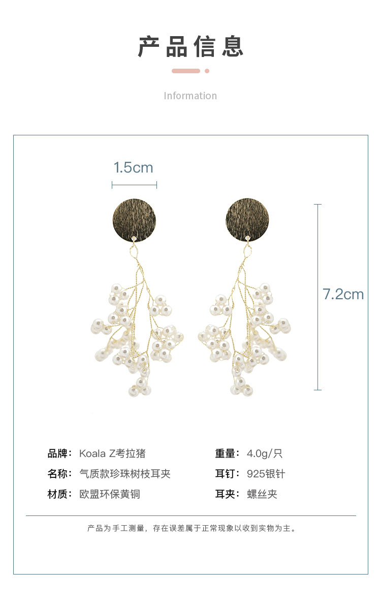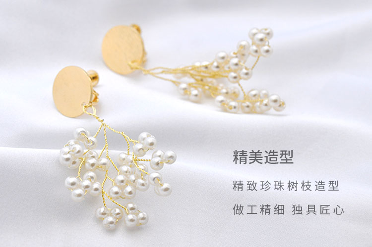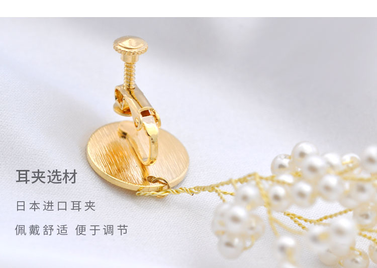 手作不规则金属丝葡萄珍珠串长款耳环耳夹无耳洞女甜美可爱