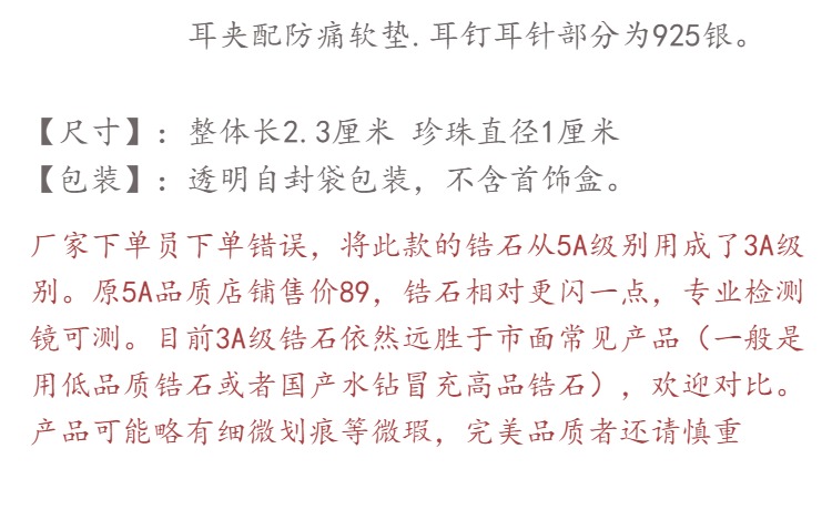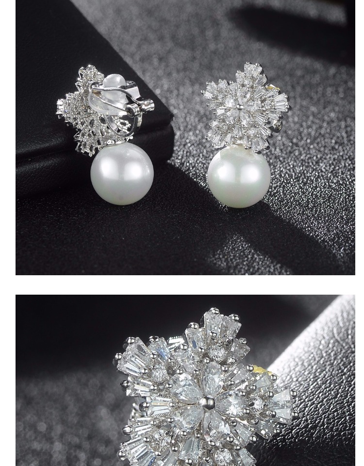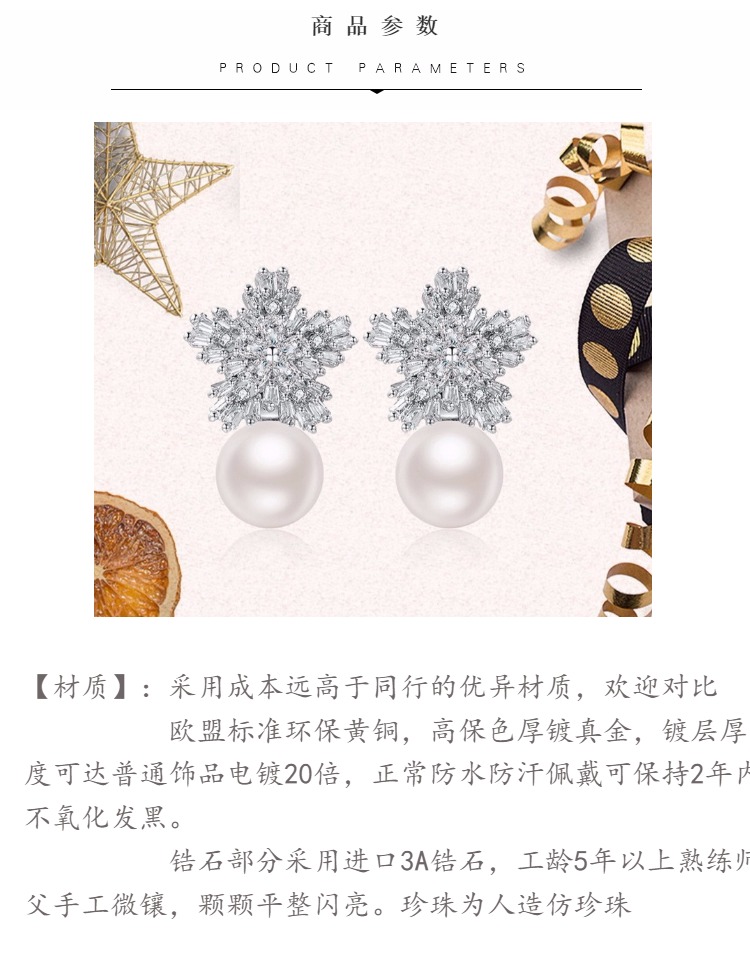 特惠 精灵超美雪花锆石珍珠耳环耳夹无耳洞女欧美韩国气质