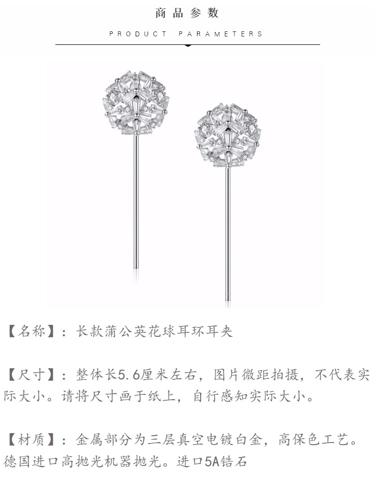 蒲公英花球纯净气质大气清新长款流苏耳环耳夹无耳洞女夸张日本