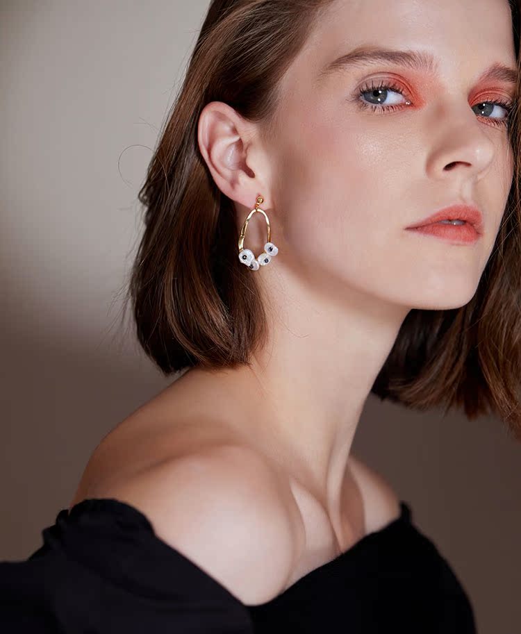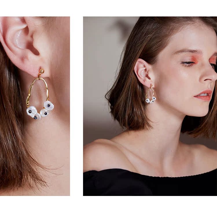 巴洛克精致复古宫廷风气质金色金属珍珠耳钉无耳洞耳夹女百搭