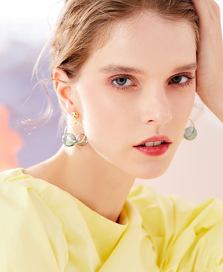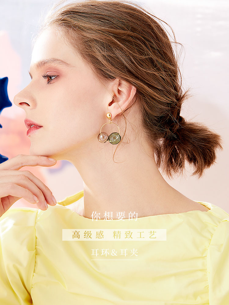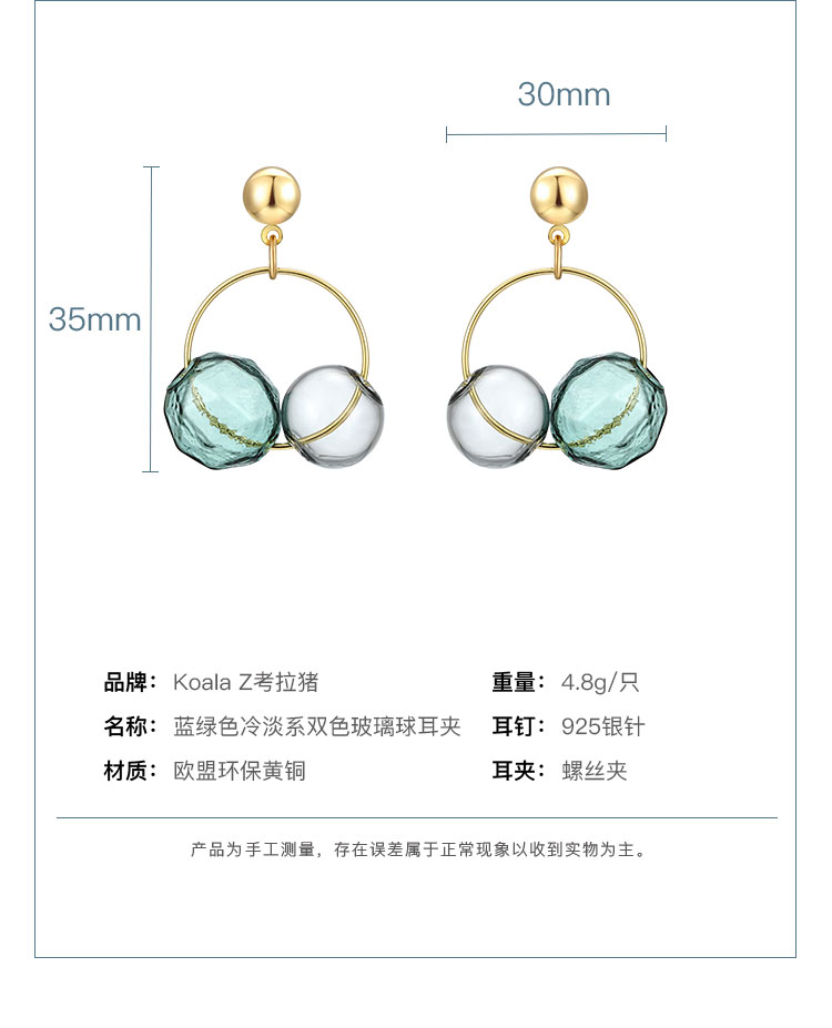 春日新品 通透玻璃球冷淡风莫兰迪色双色耳钉耳环耳夹无耳洞女