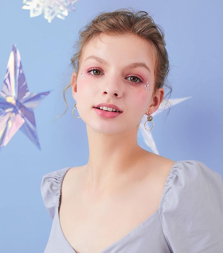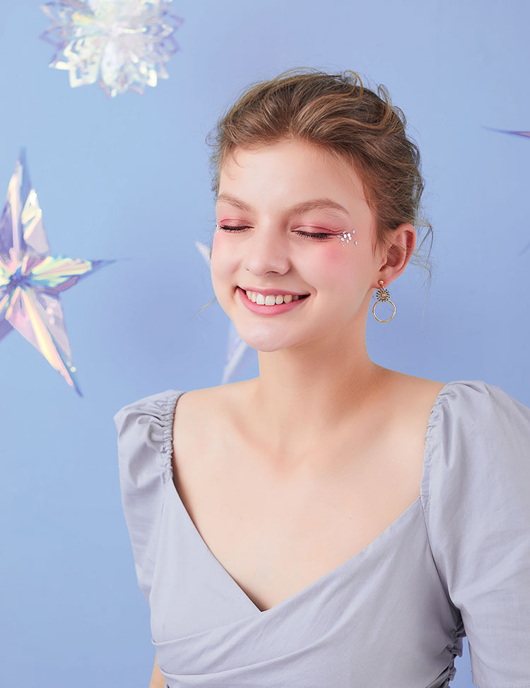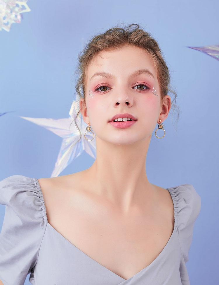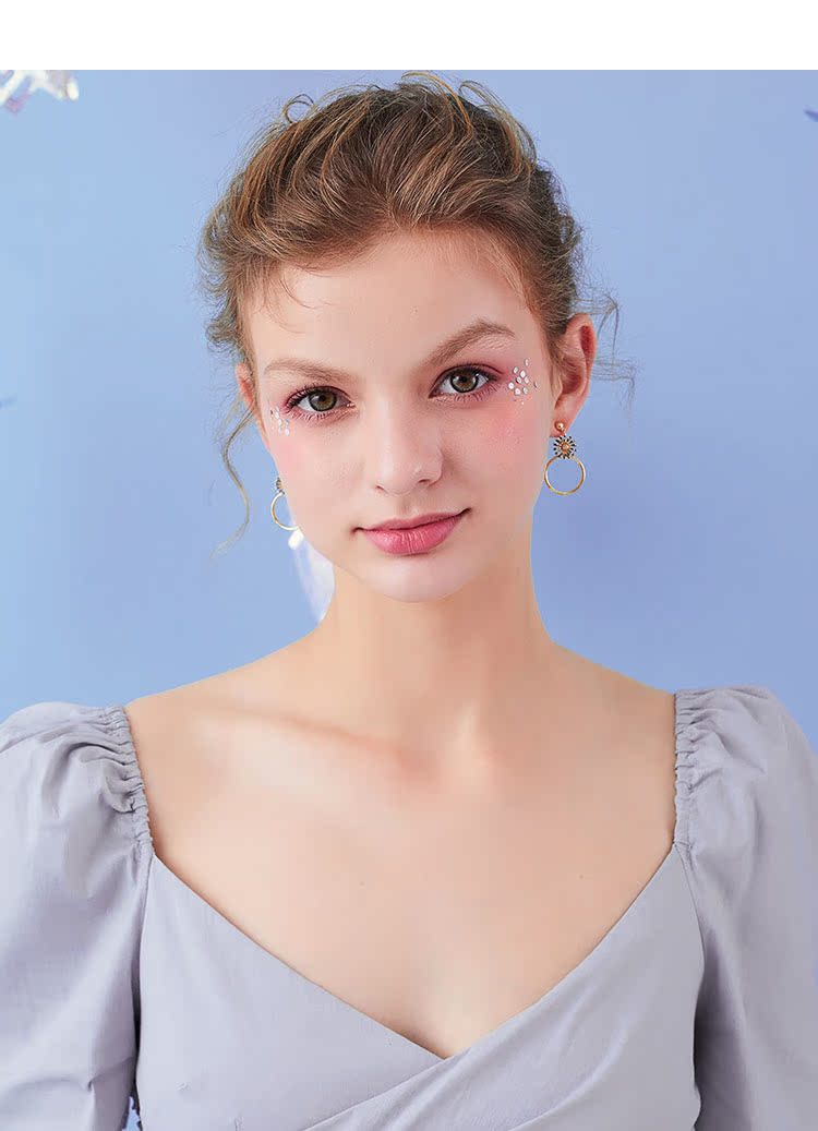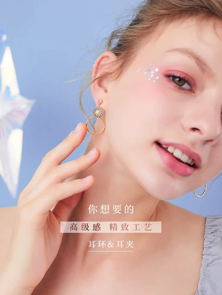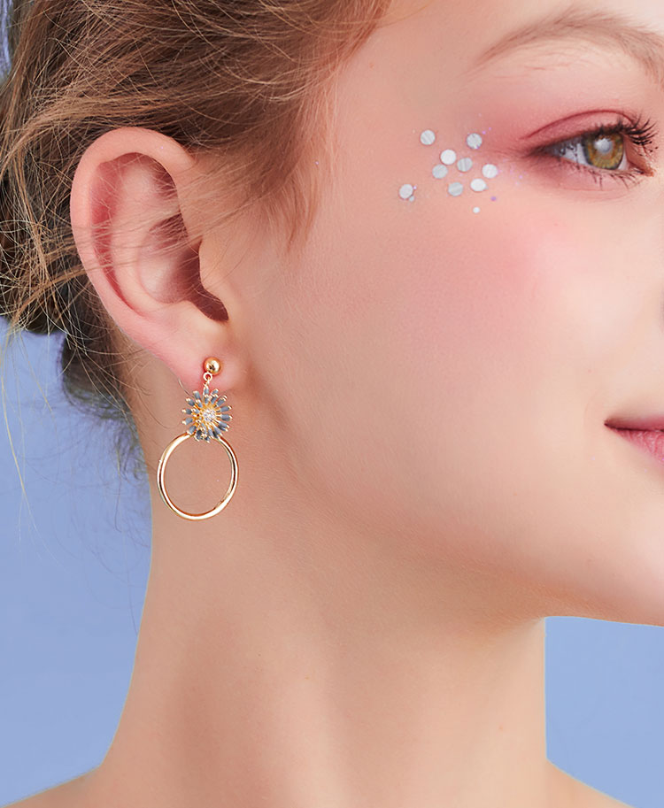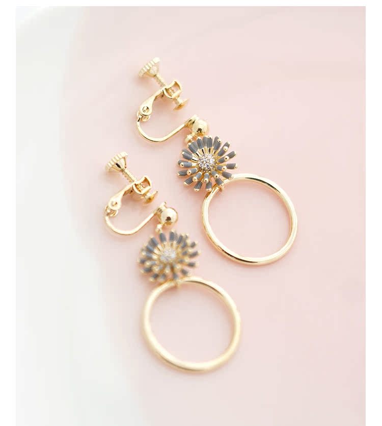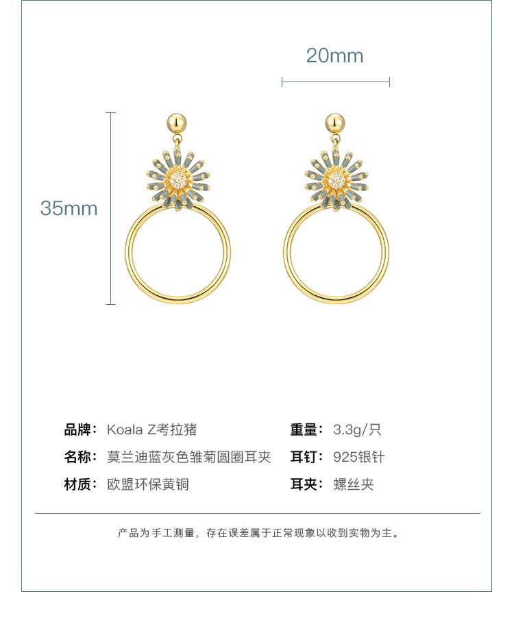 清新甜美莫兰迪蓝灰色雏菊花朵金属圈耳钉耳环无痛无耳洞耳夹