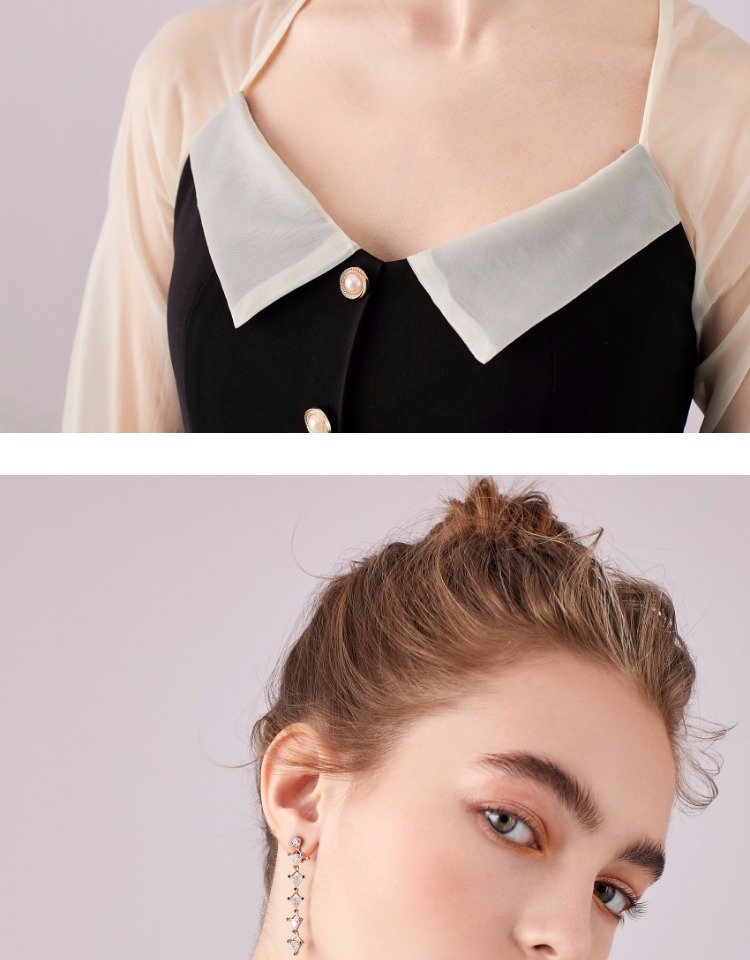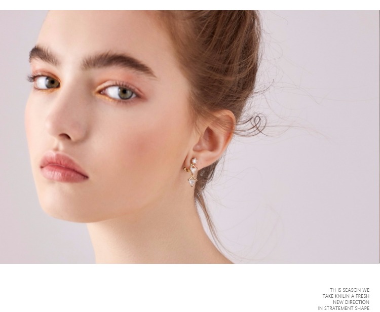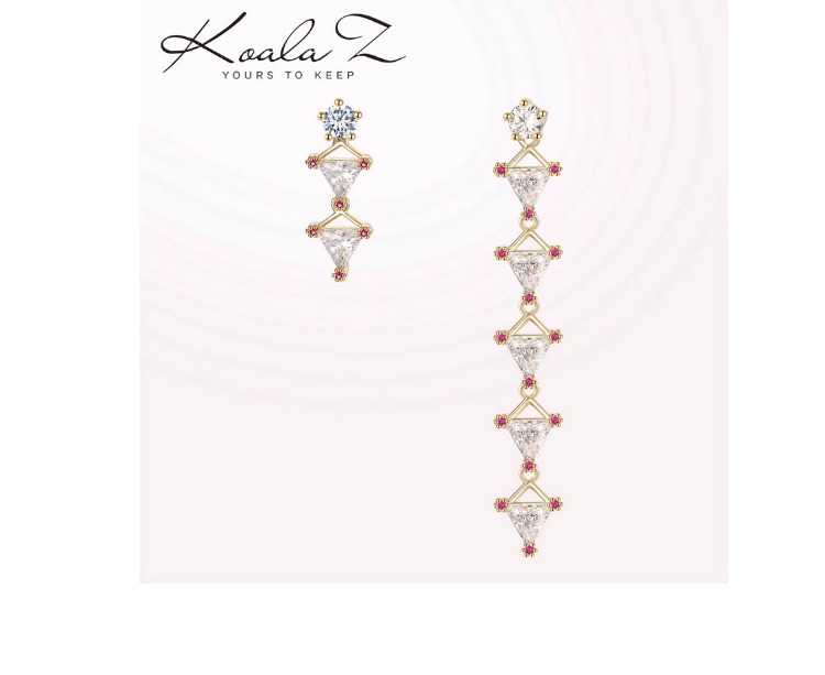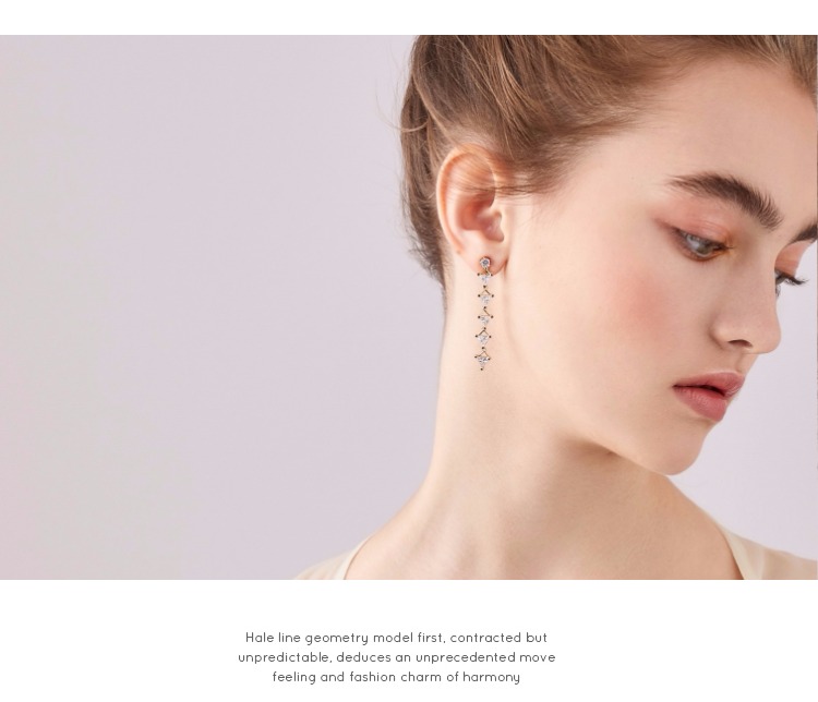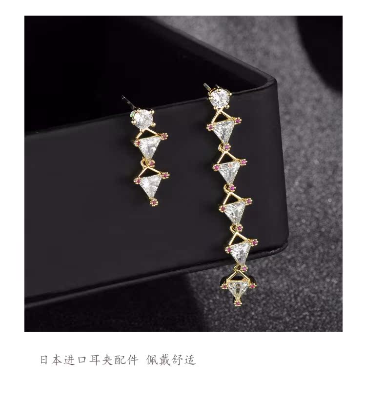清仓 不对称拼接三角锆石流苏长款耳环耳钉耳夹无耳洞女日本