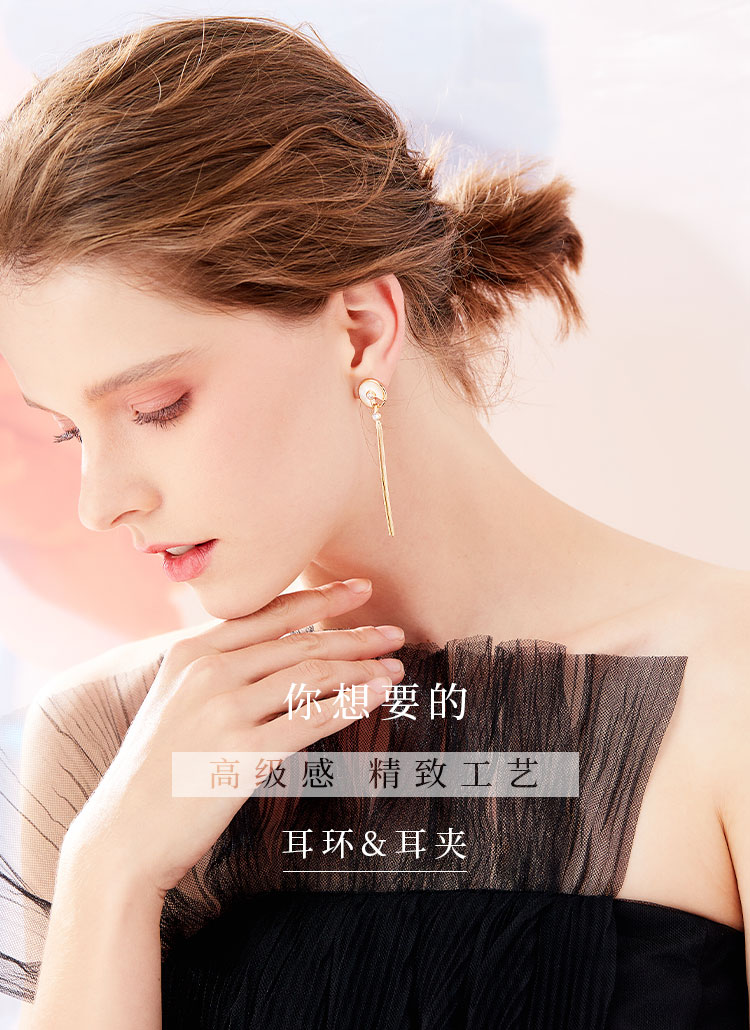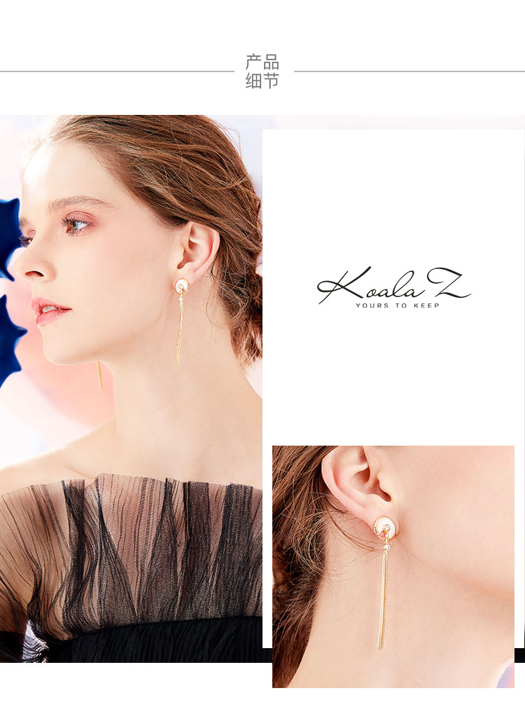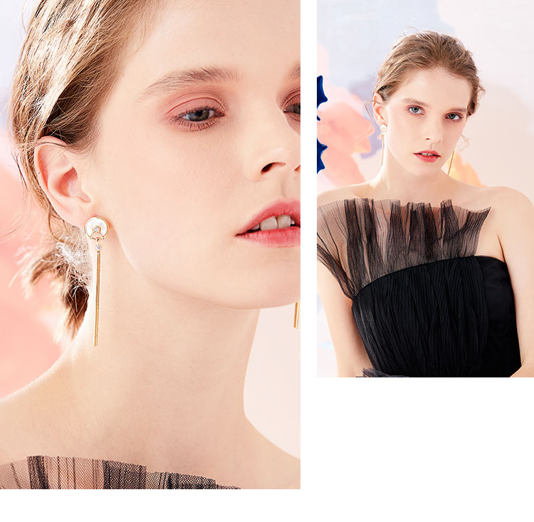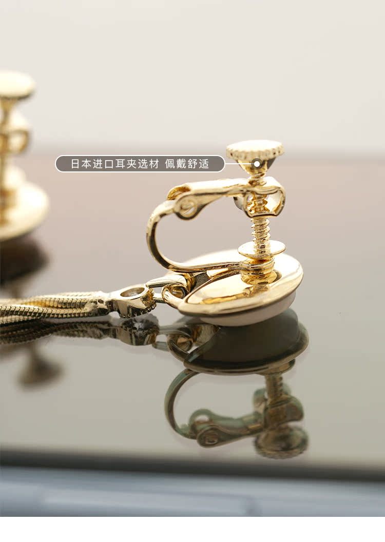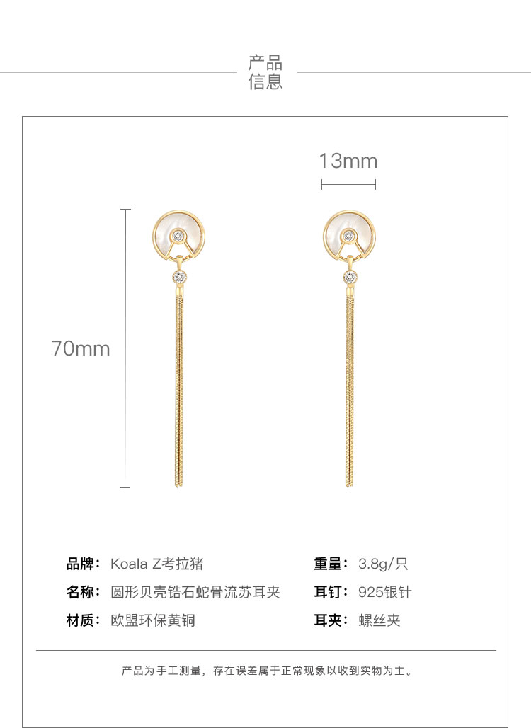 气质护身符 精致镜面贝壳锆石长款蛇骨流苏耳环无耳洞耳夹女百搭