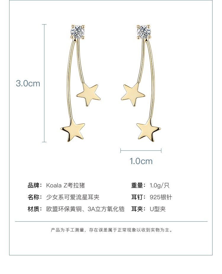 极简流星 简约百搭金属质感流星彗星彗尾耳环耳夹无耳洞女日系