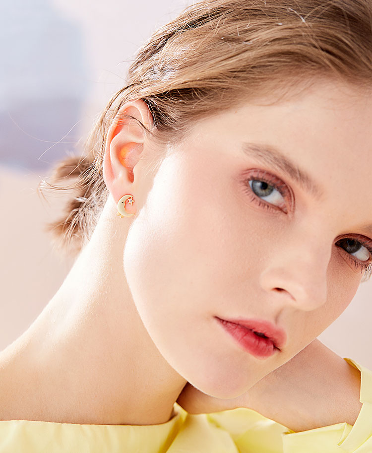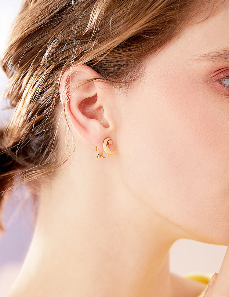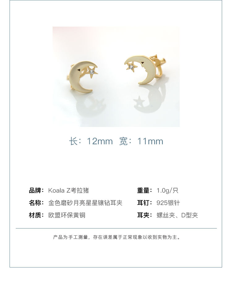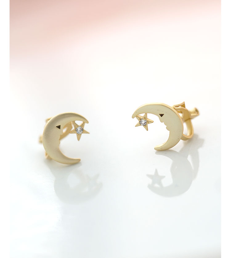 极简设计梦幻童话世界金色磨砂星星月亮镶钻耳钉无痛无耳洞耳夹