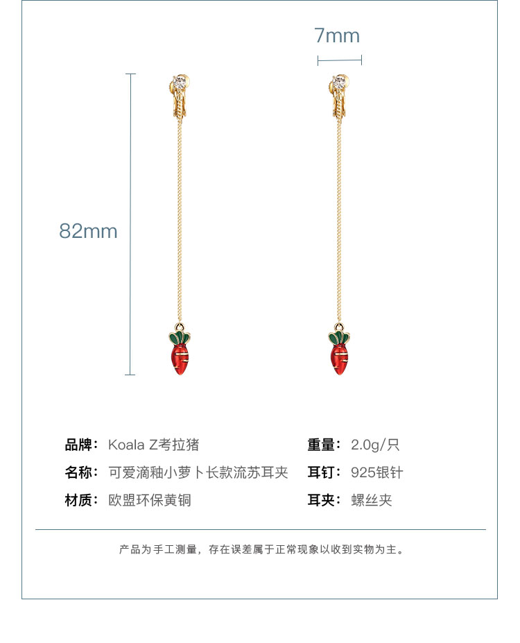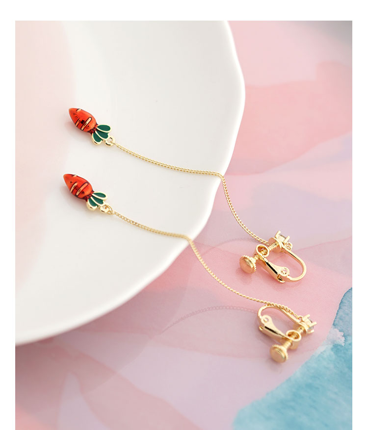 可爱滴釉金属小胡萝卜日系元气甜美耳钉无耳洞耳夹女无痛日常款