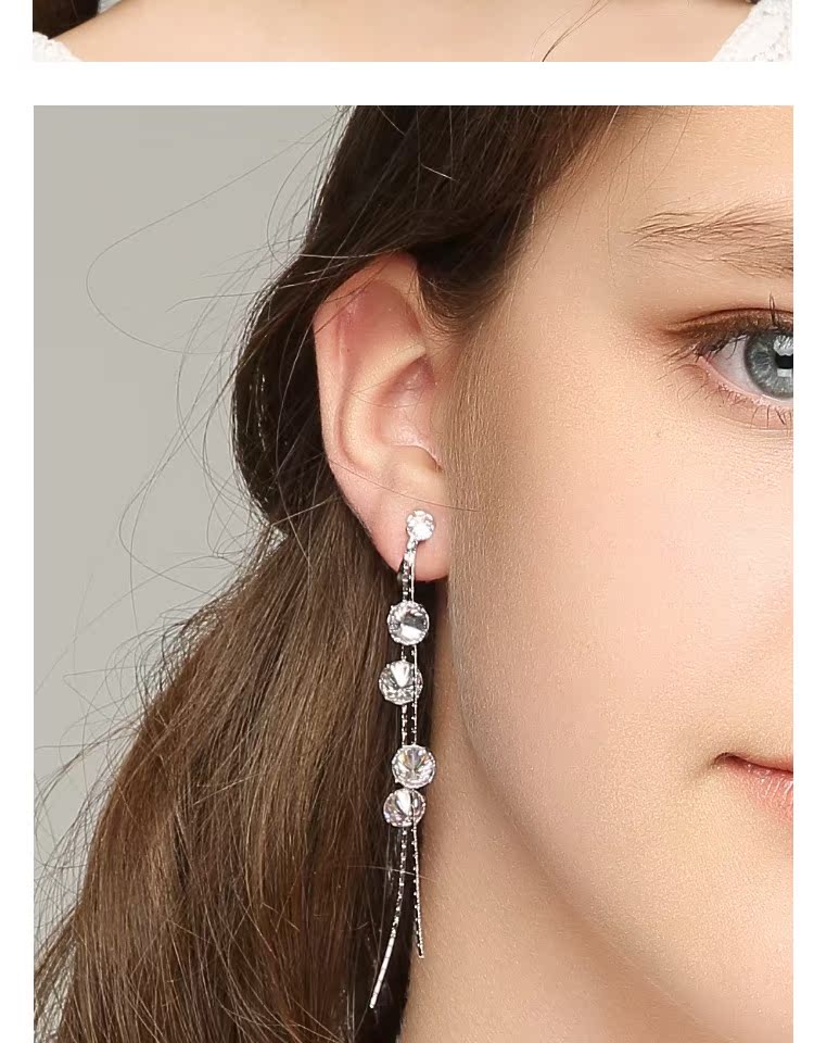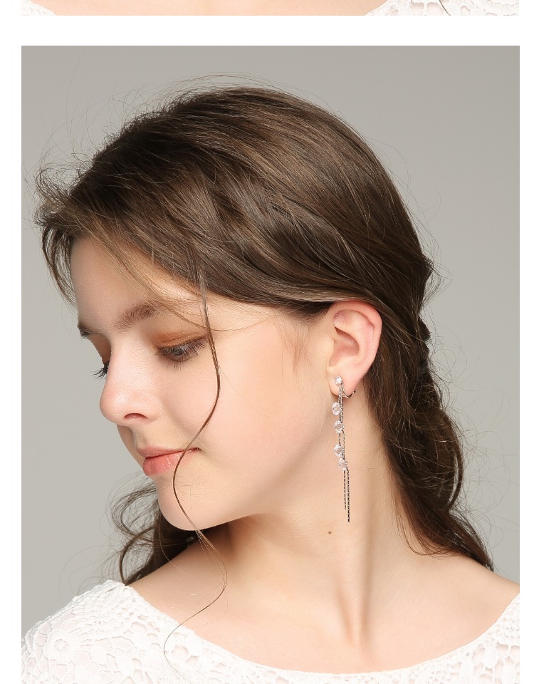 减龄少女修饰脸型 长款背向水晶流苏耳环耳夹女无耳洞无痛夹式