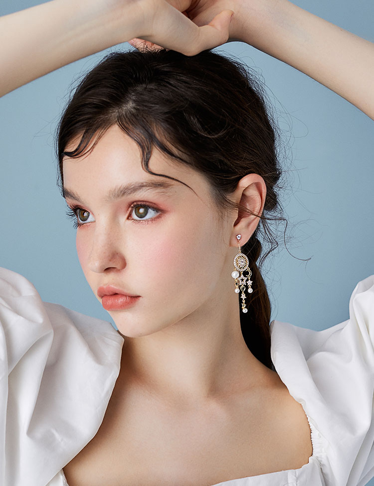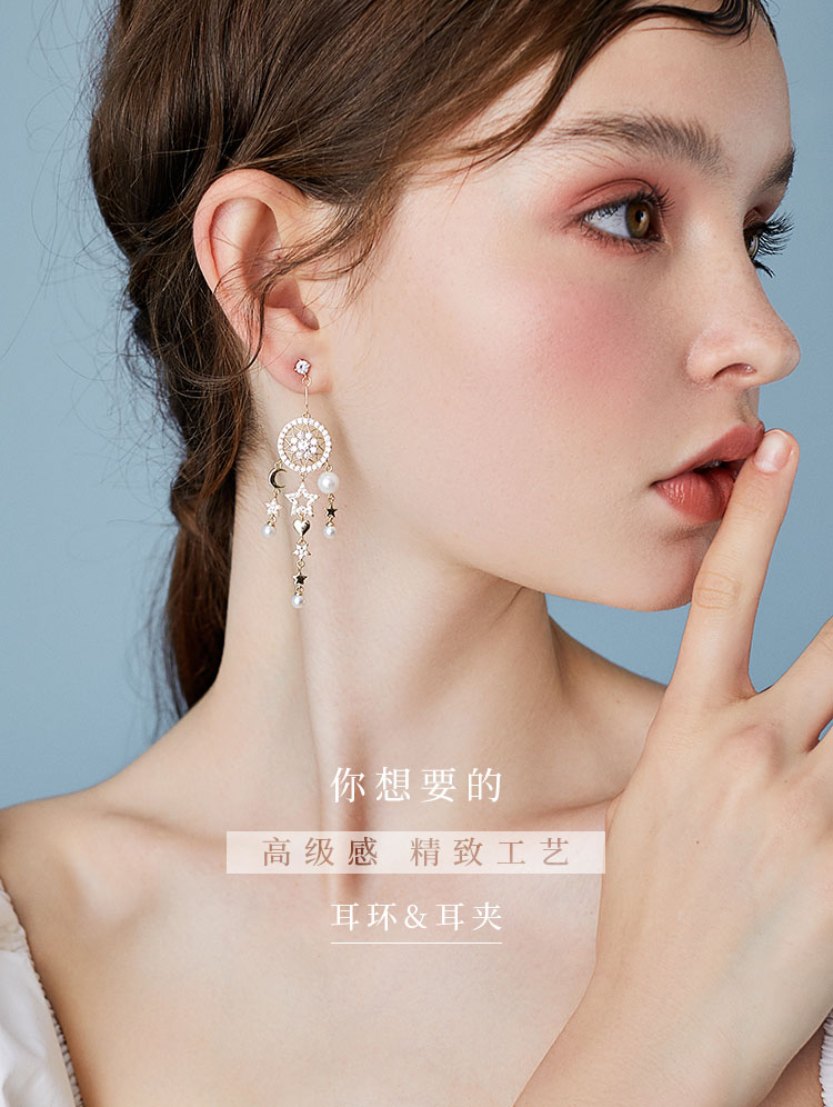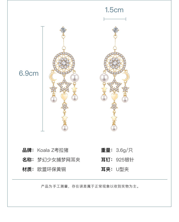 星星的珠宝!重工设计长款流苏星星月亮捕梦网耳环耳夹无耳洞女