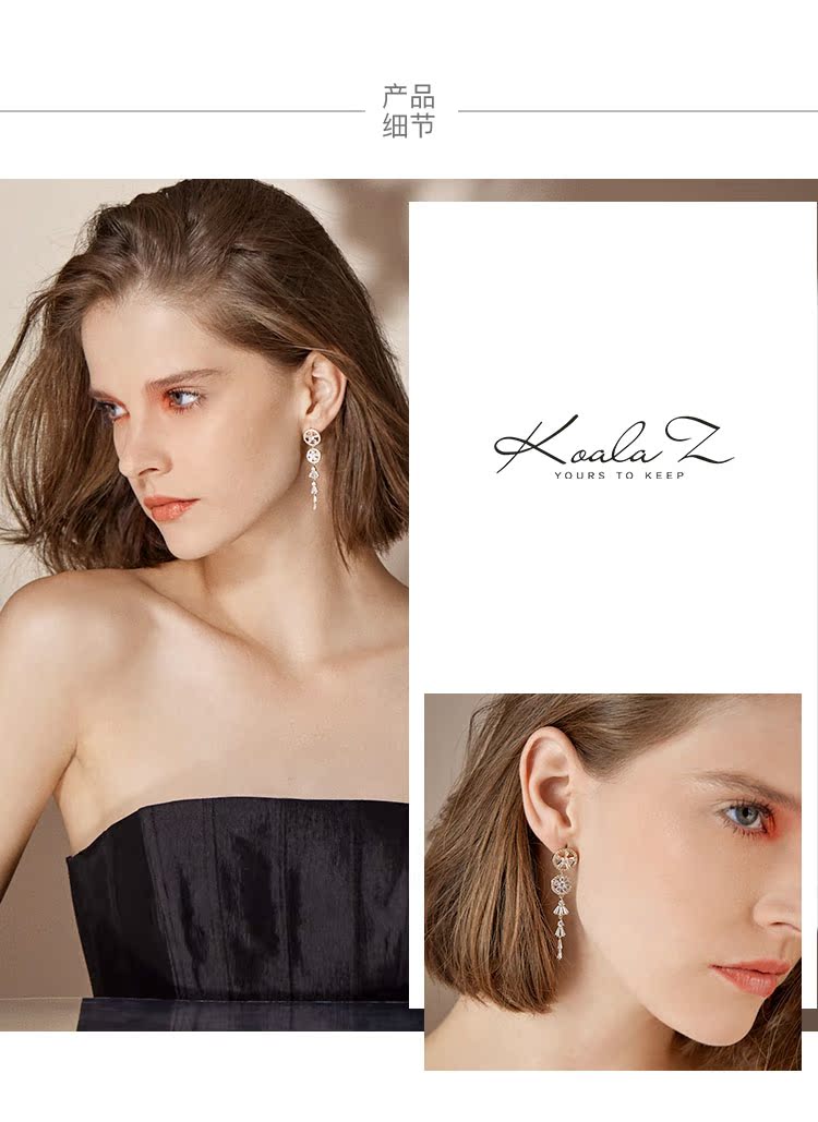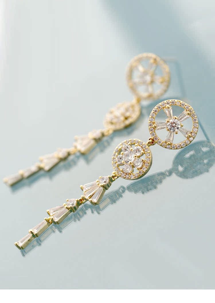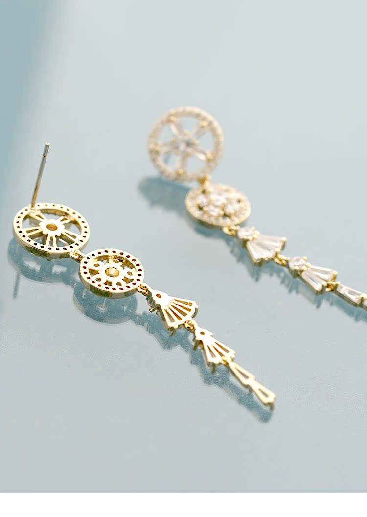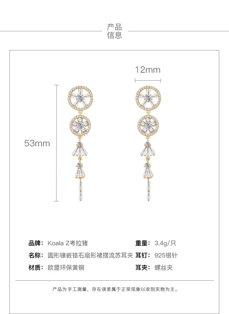 圆形镶嵌锆石镂空裙摆流苏耳钉耳环无痛无耳洞耳夹日常