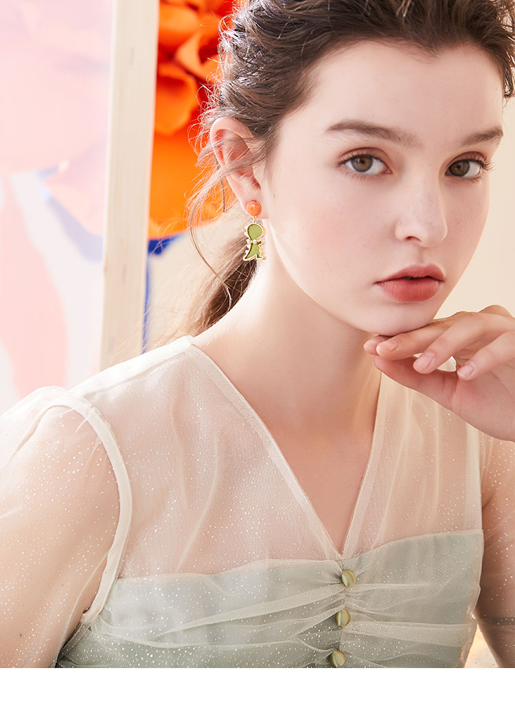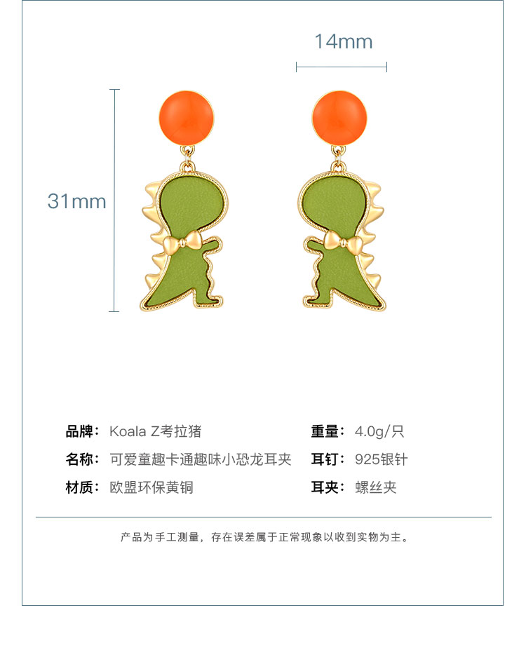 可爱减龄童趣卡通小恐龙滴釉耳钉耳环无痛无耳洞可调节耳夹日常