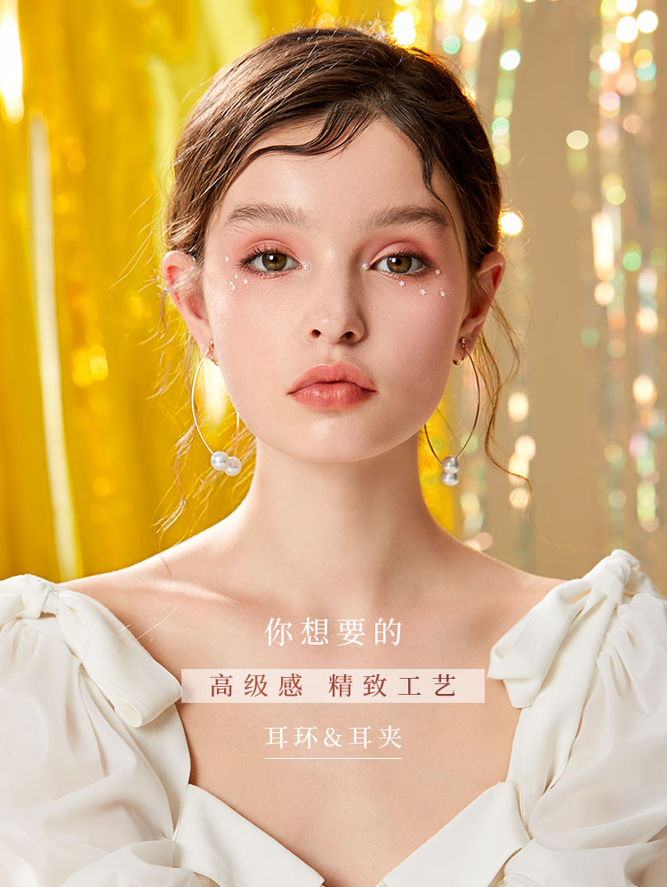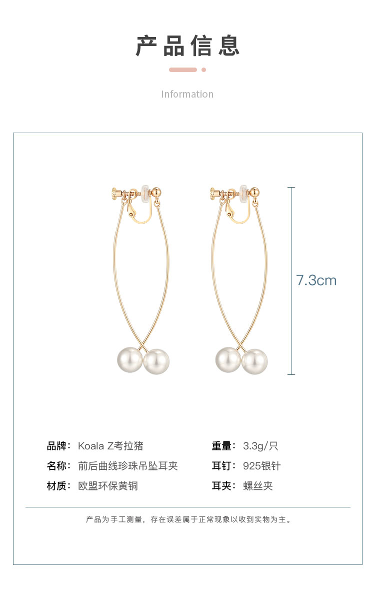 日系百搭 前后简约曲线珍珠耳环耳夹无耳洞女气质螺旋极简冷淡风