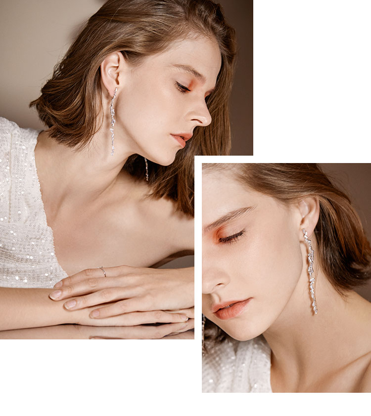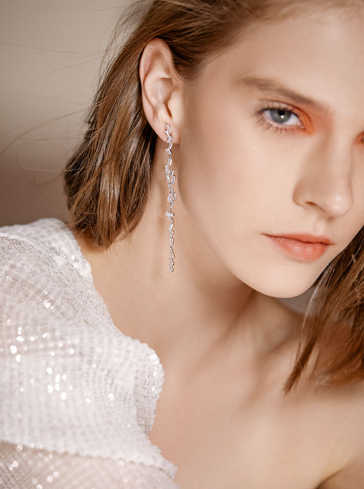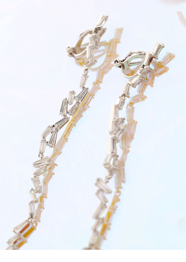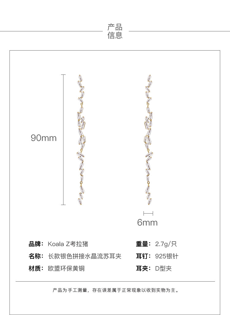 明星最爱的长闪电 仙女气质长款拼接水晶流苏耳钉耳环无耳洞耳夹