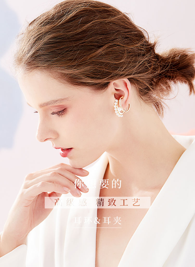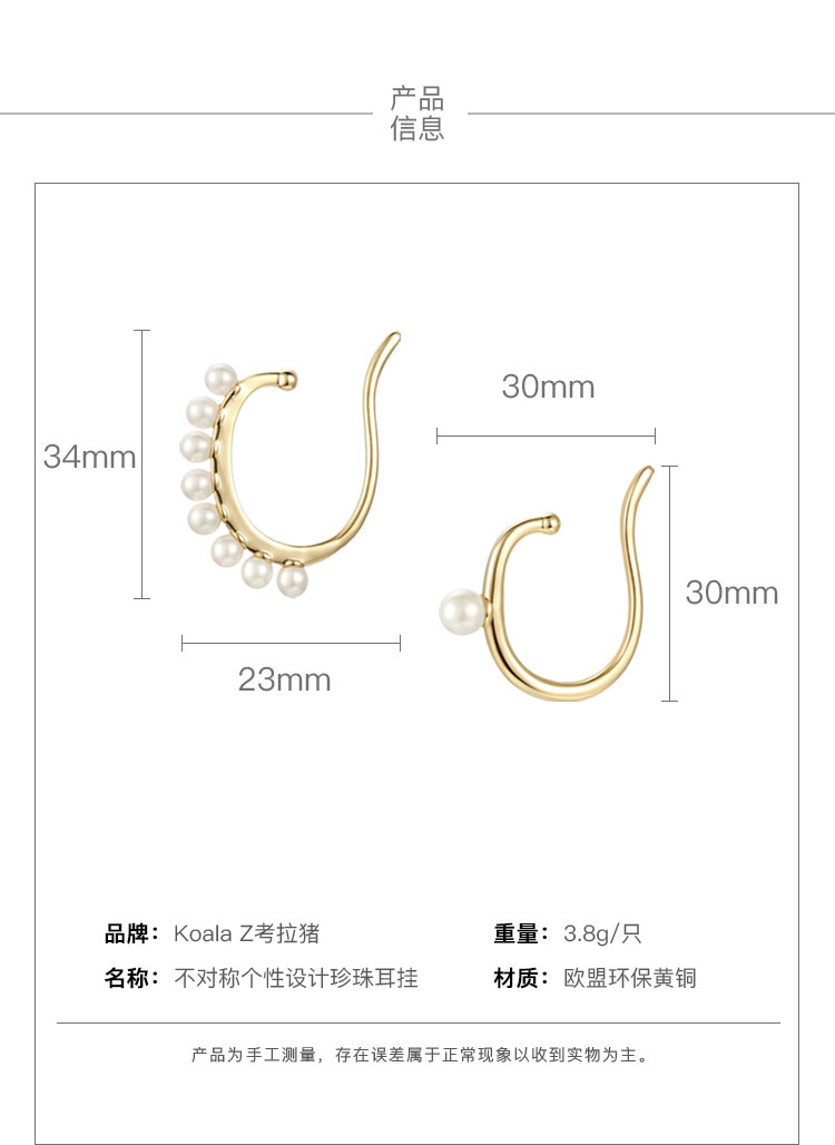 个性不对称小众设计珍珠耳挂女日常佩戴百搭款
