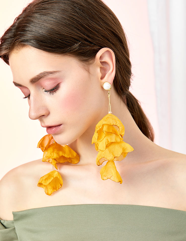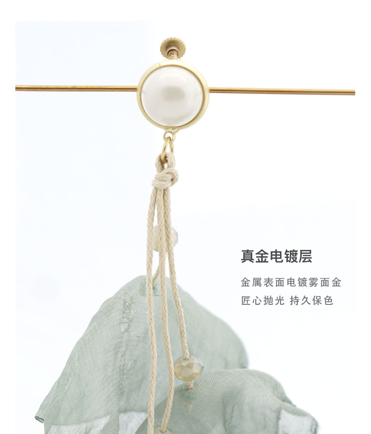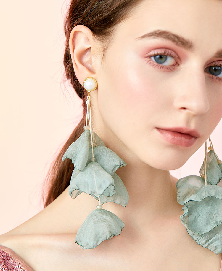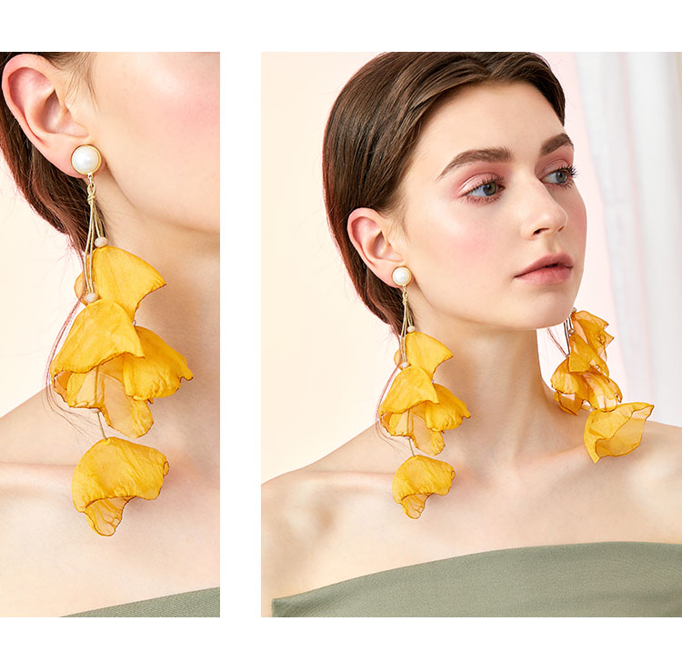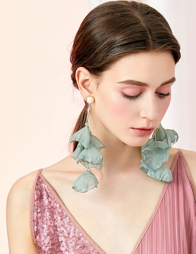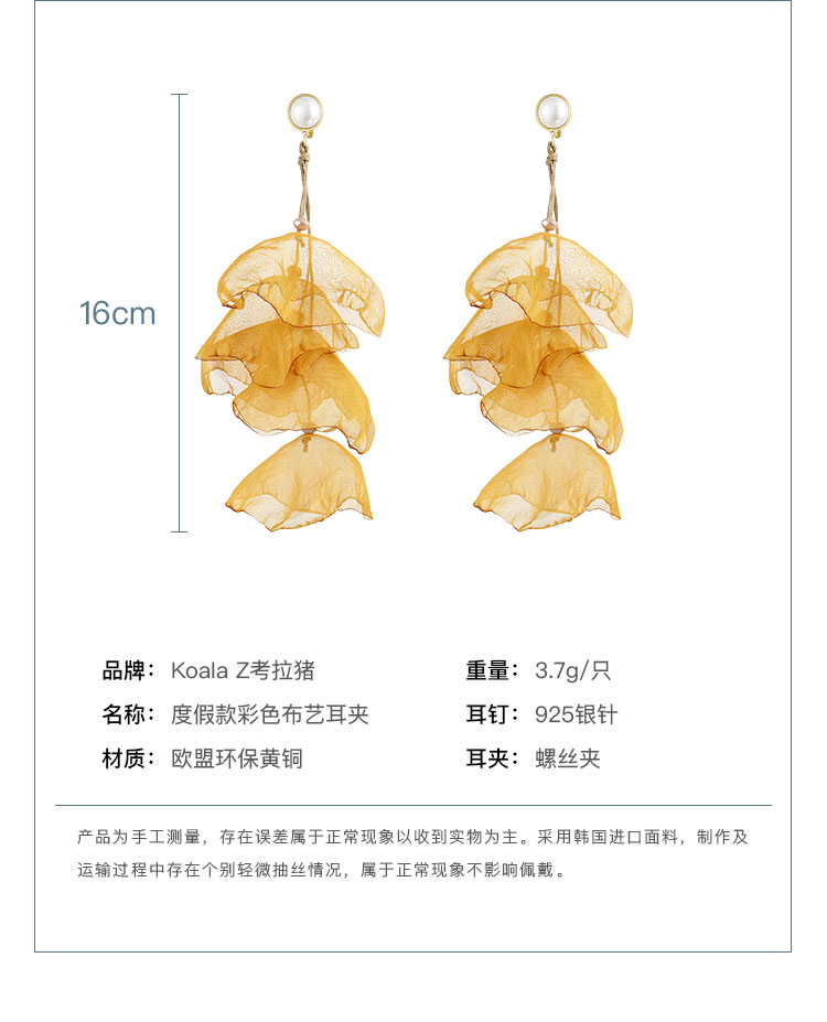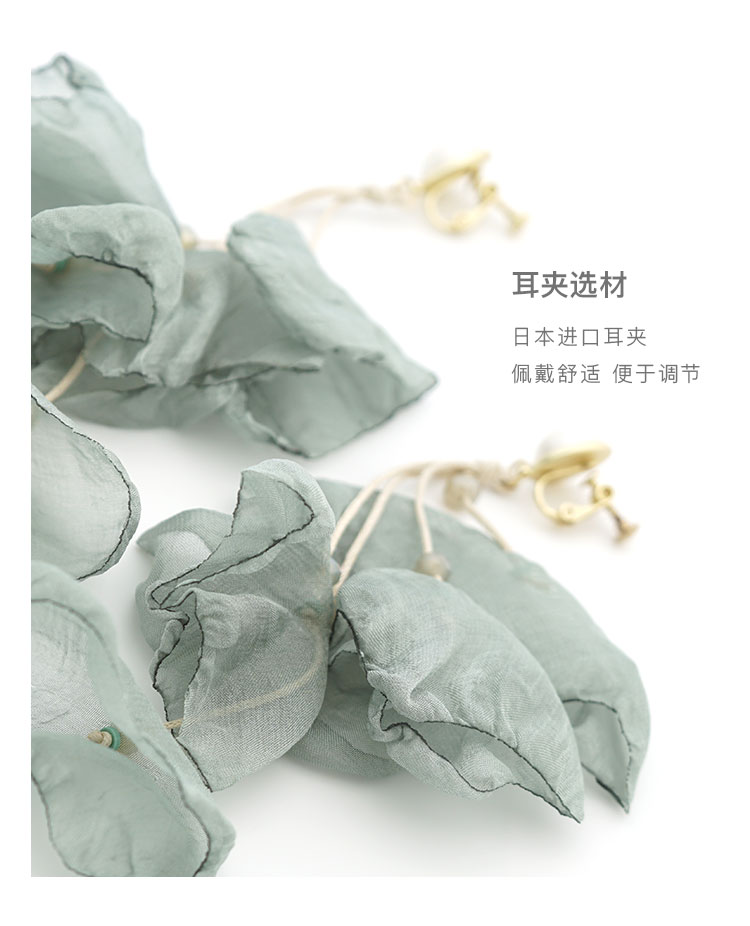 进口韩国飘逸面料 夏日清爽雪纺布艺花朵长款流苏耳环耳夹无耳洞