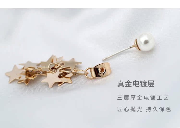 精致小巧百搭瀑布五角星星小流苏耳环耳夹无耳洞女韩国