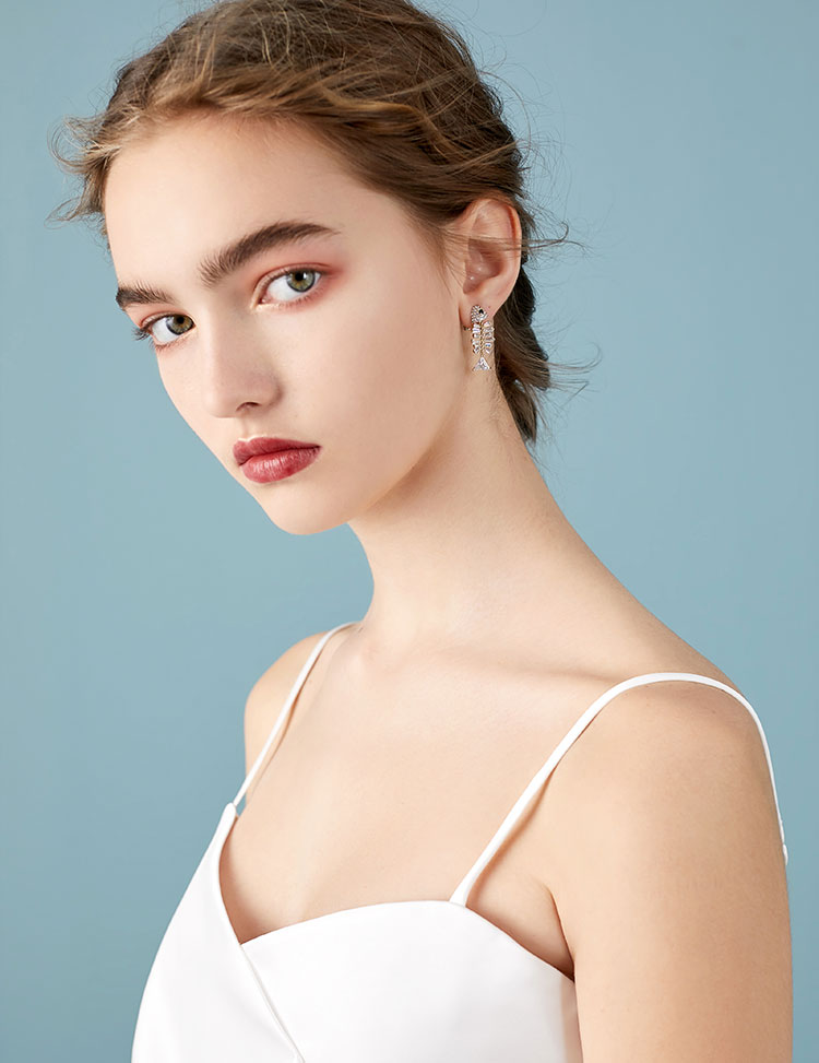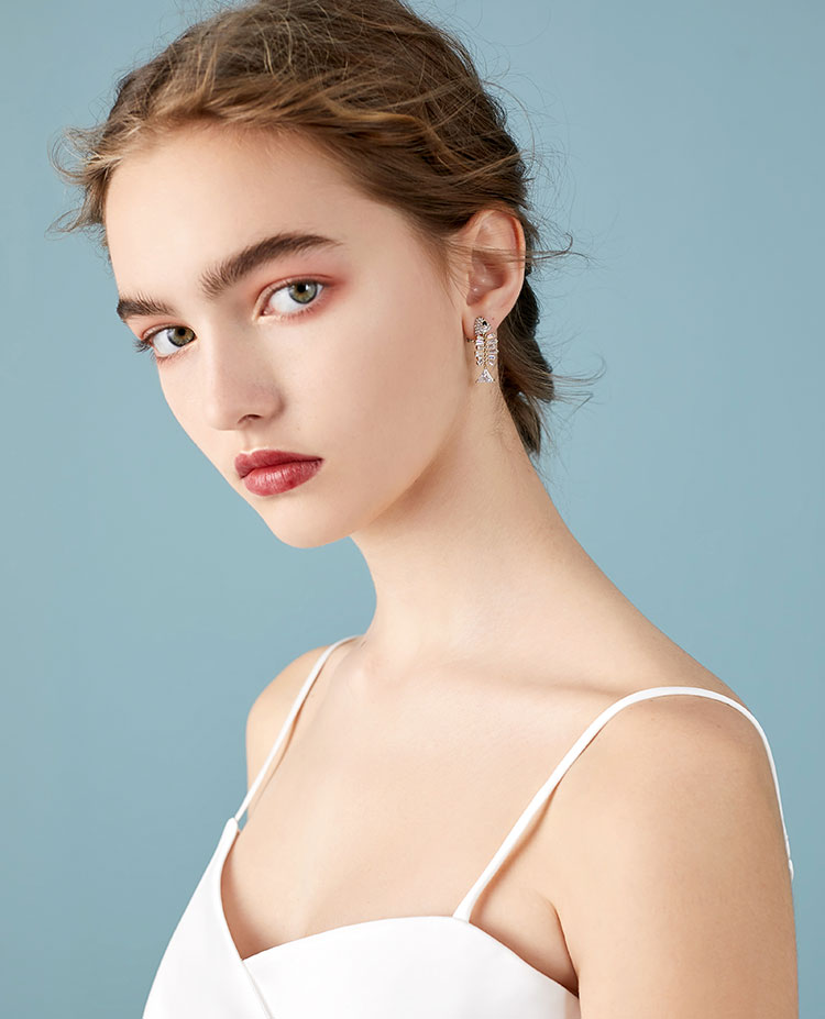 精品手作 闪耀质感百搭水晶小鱼骨个性耳环耳夹无耳洞女日系小巧