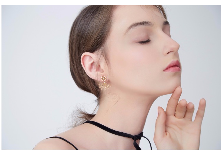 精致手作欧洲复古镶钻镂空宫扇扇形耳环耳钉耳夹无耳洞女韩国气质