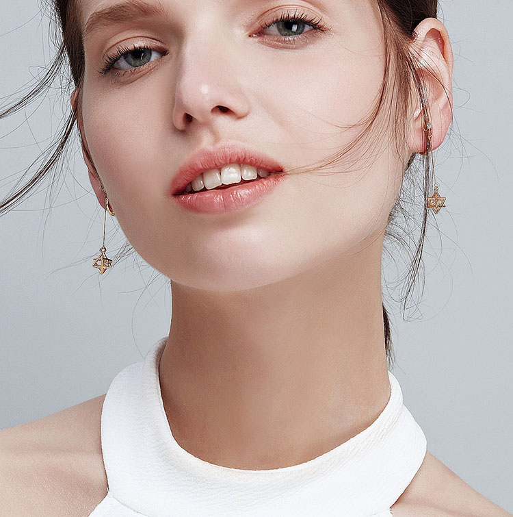 日系清新简约百搭六芒星耳环耳钉耳夹无耳洞女日本可调节螺旋日式