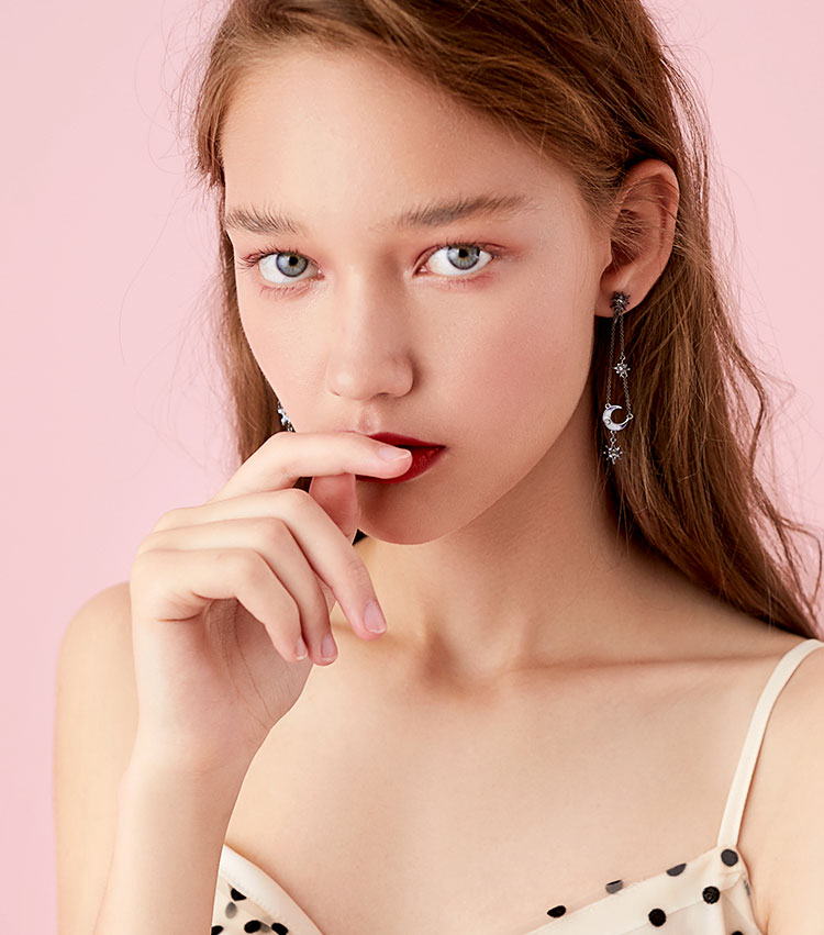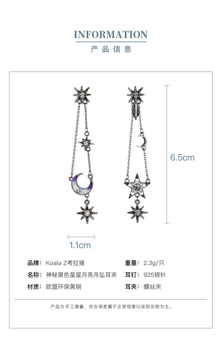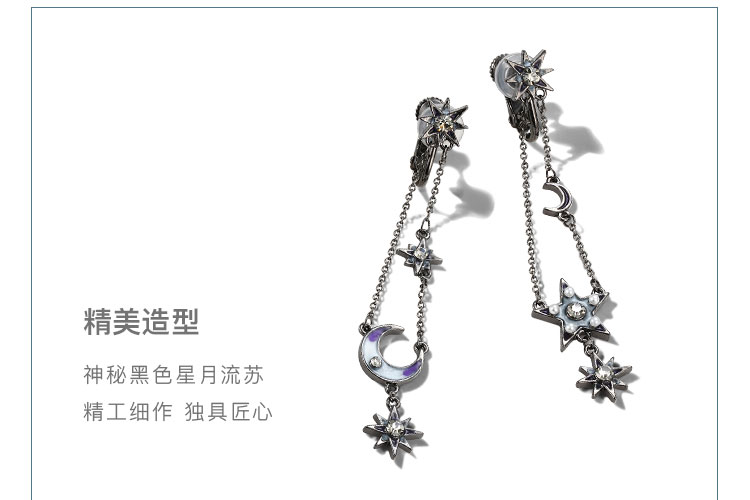 日系 长款个性黑色星星月亮星辰耳环耳夹无耳洞女适合圆脸个性