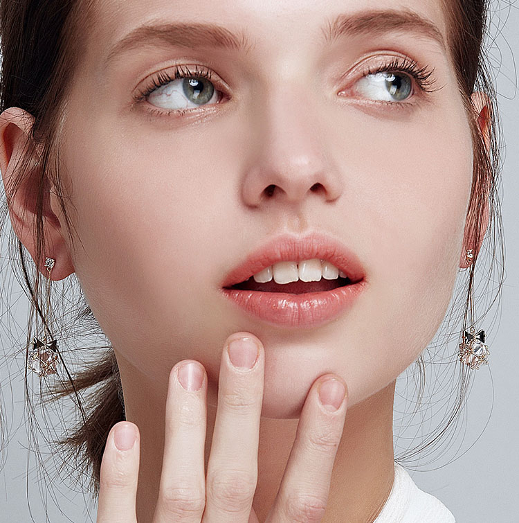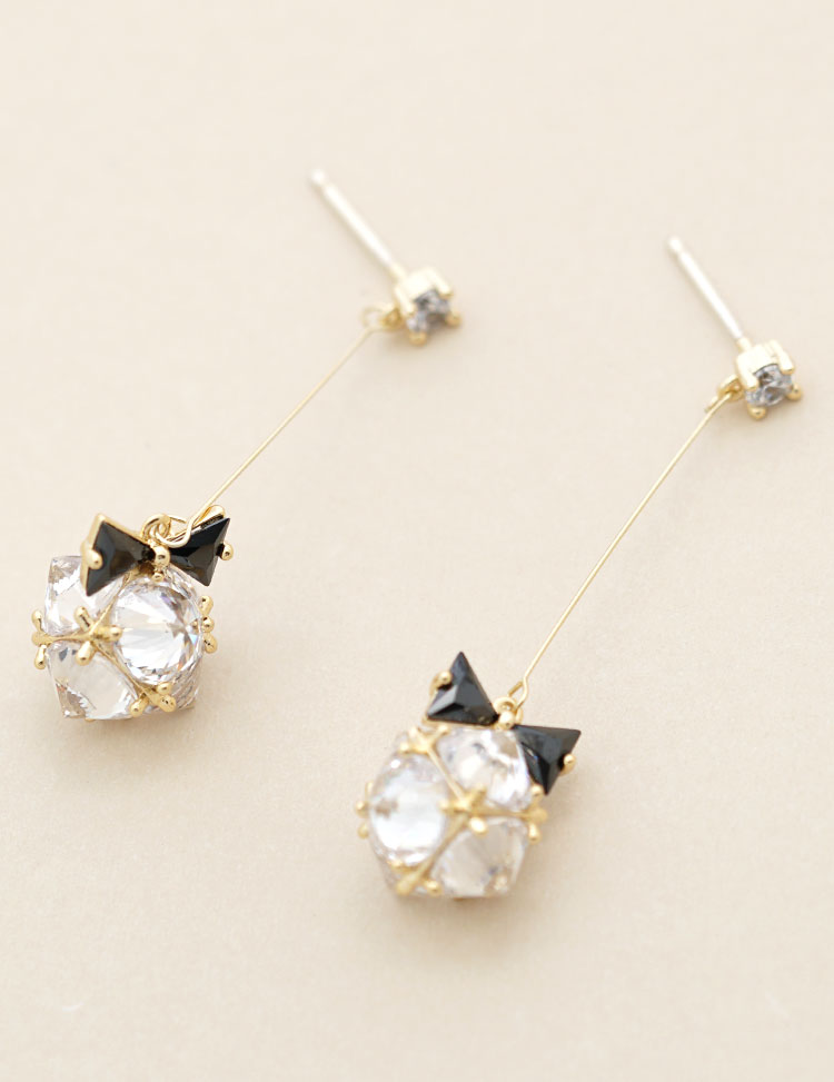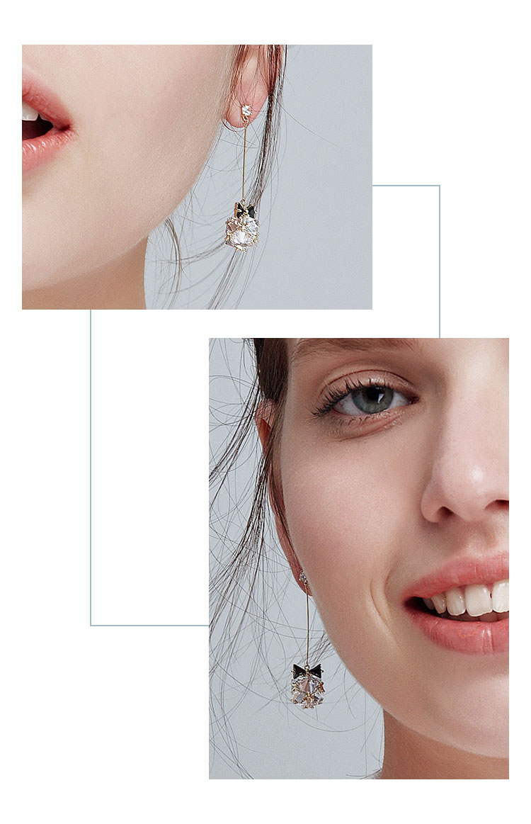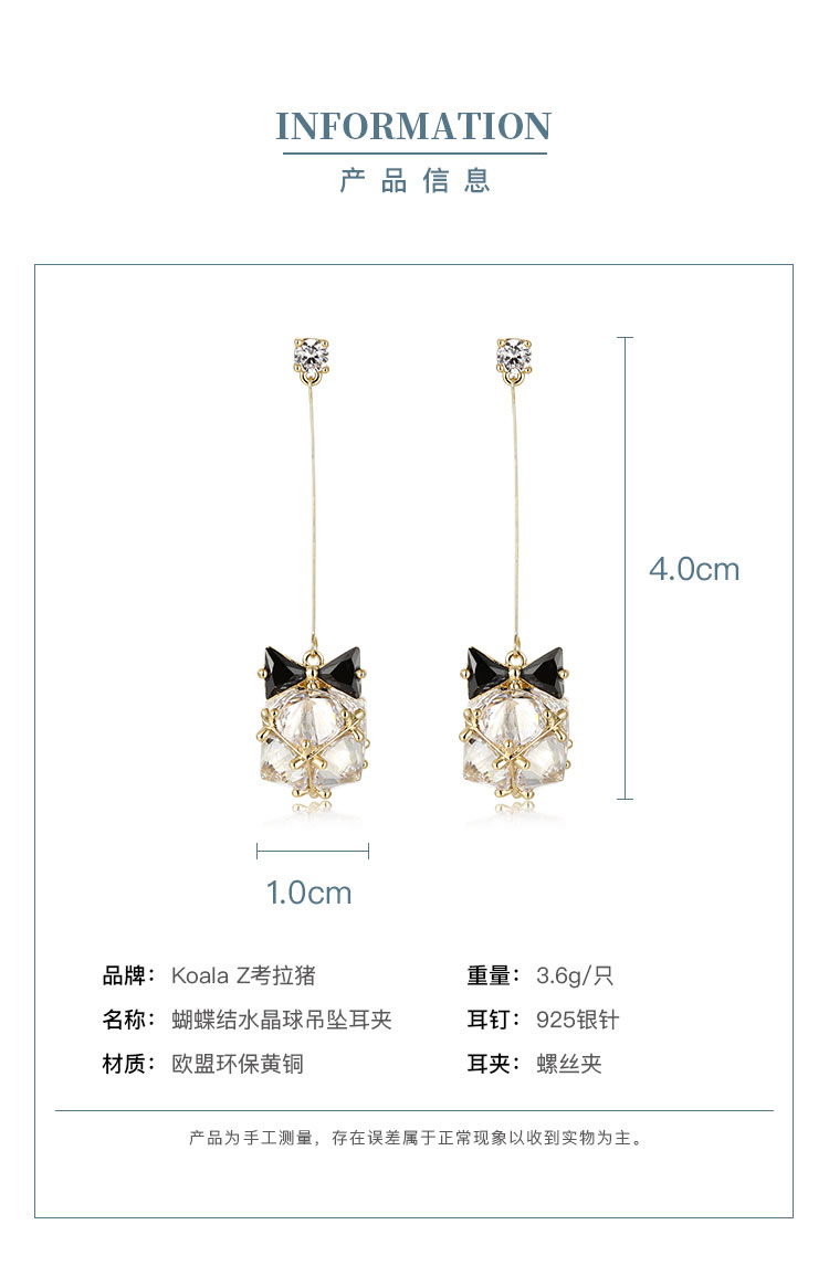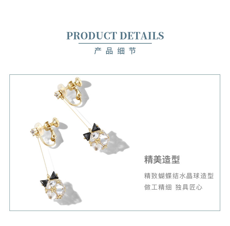 考拉猪 日系和风蝴蝶结水晶球长款耳环耳夹无耳洞女日本软妹清新
