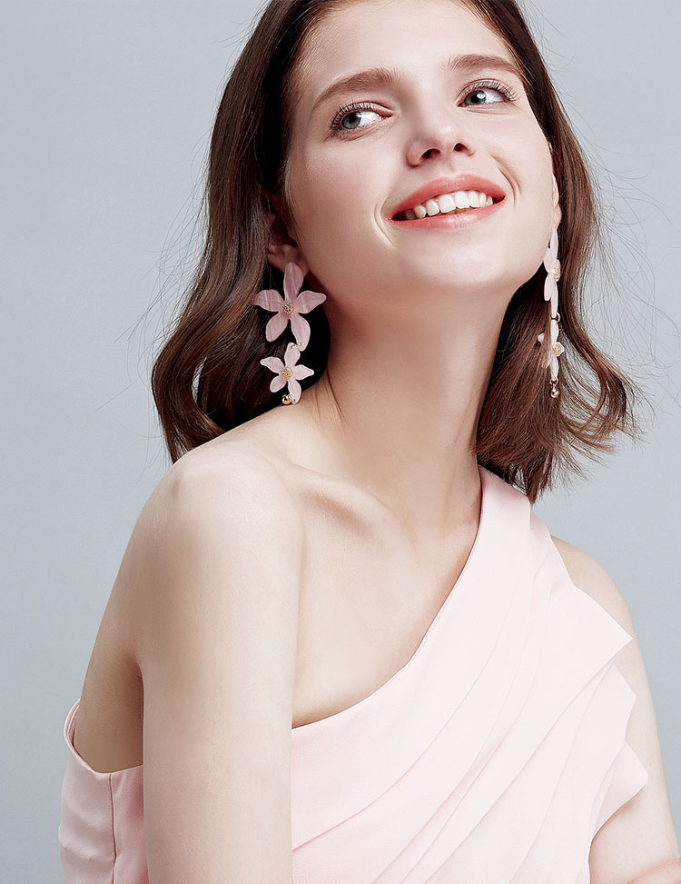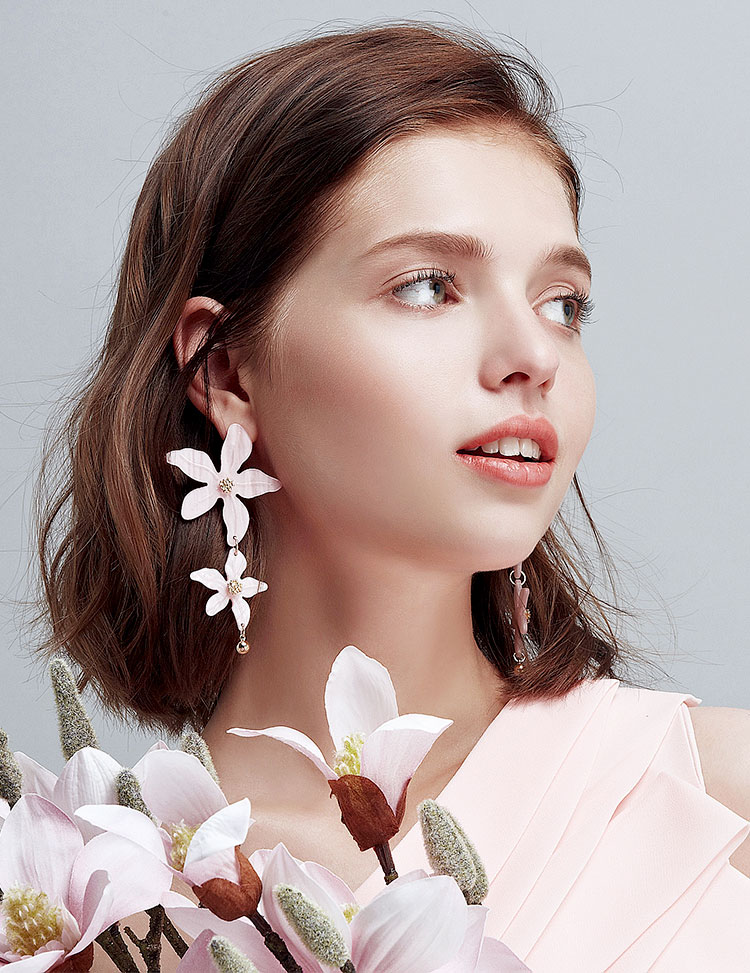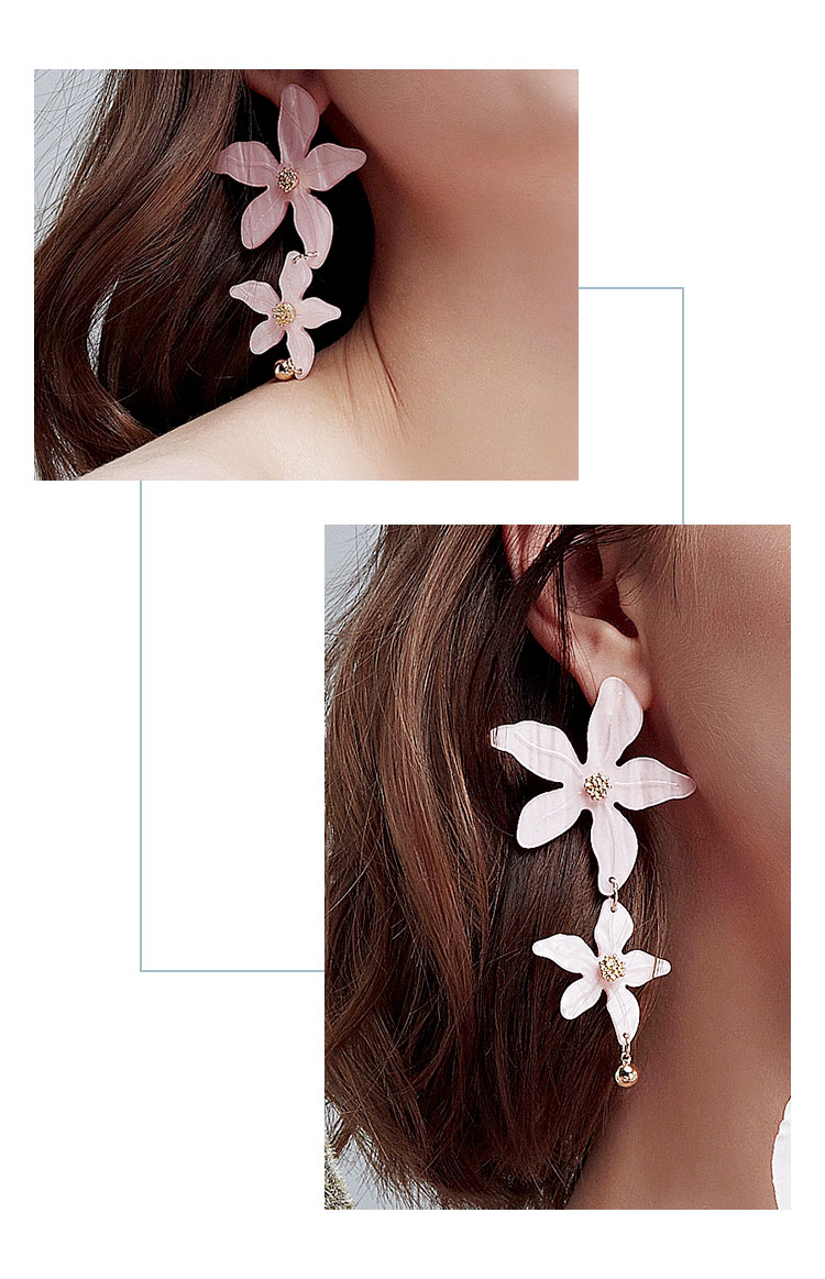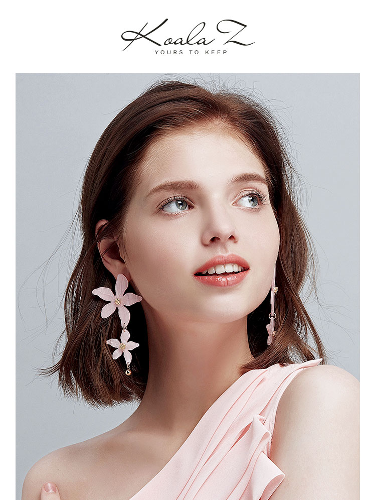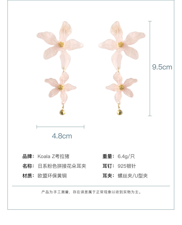 花朵显瘦长款夸张日系显瘦修饰脸型拼接花朵粉色耳环耳夹无耳洞女