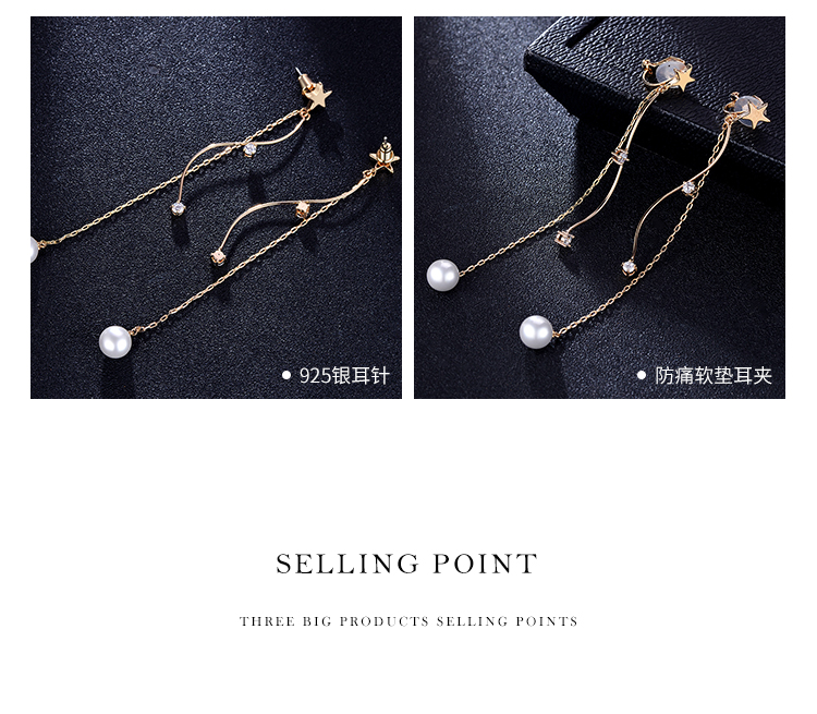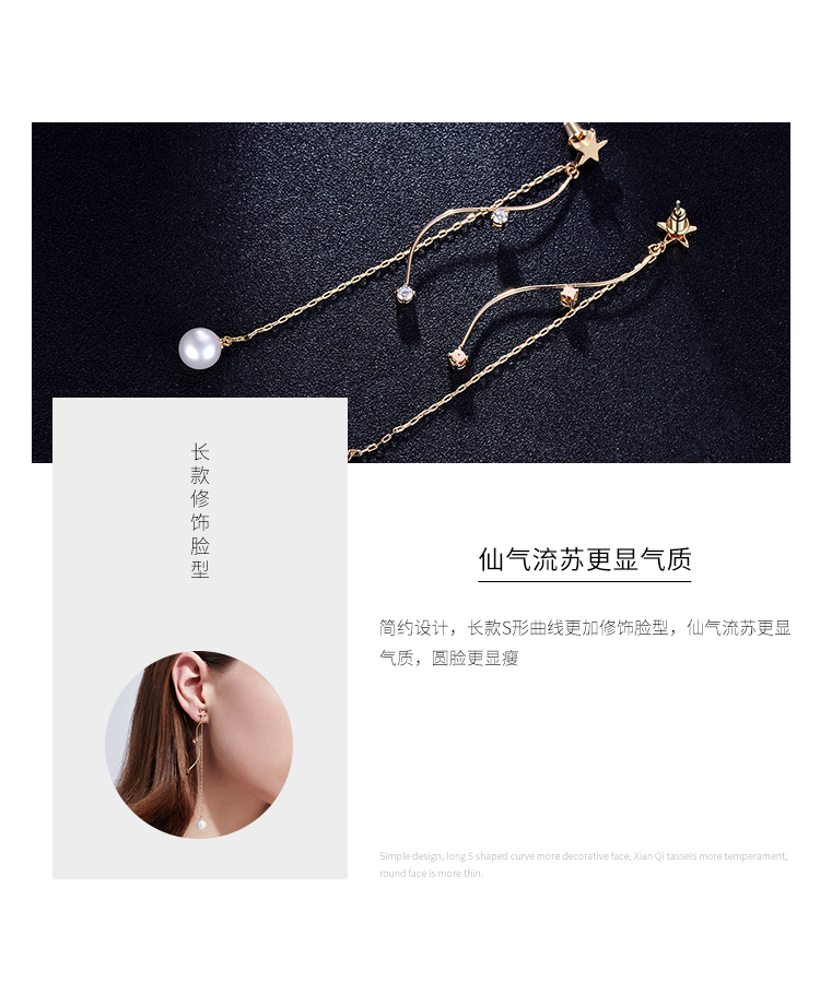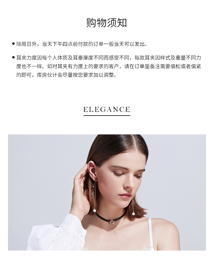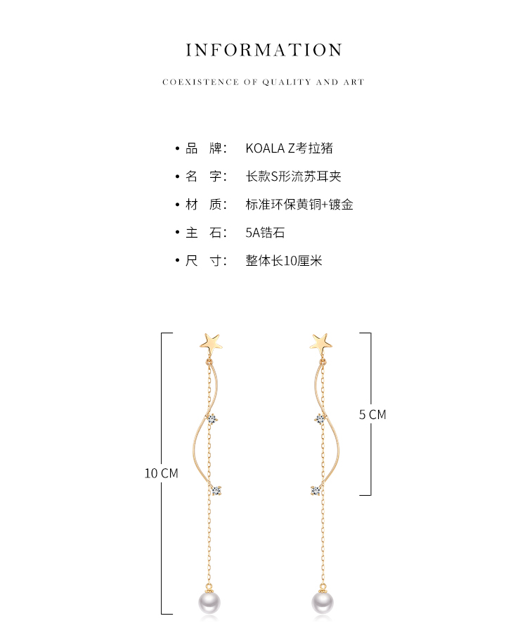 适合圆脸 冷淡风长款星星流苏耳环耳坠耳夹无耳洞女韩国个性显瘦