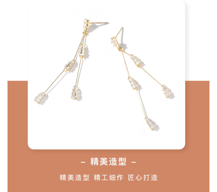 适合圆脸的小流苏双线方钻几何长款耳环耳夹无耳洞女日系清新简约